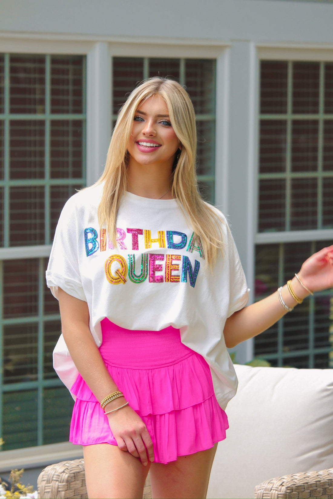 Birthday Queen Sequin Patch T-Shirt
