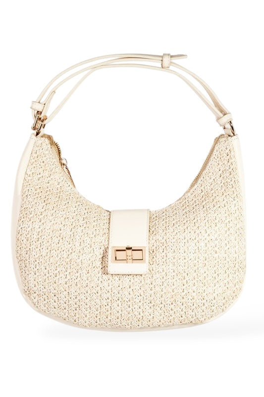 Beige Crescent Shaped Faux Leather Buckle Detail Shoulder Bag