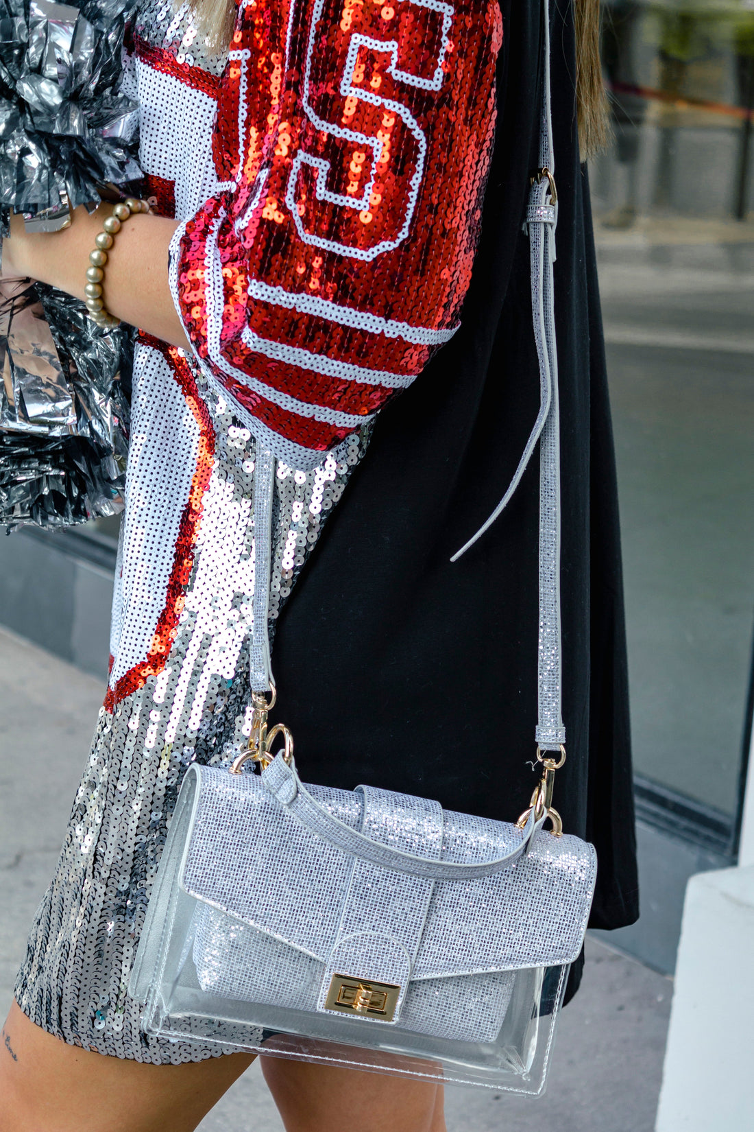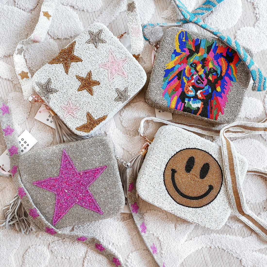 Tiana Designs Beaded Box Purse - Silver and Pink Star