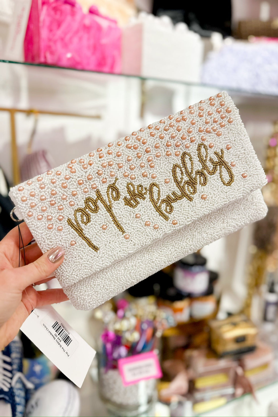 Tiana Designs Beaded Box Purse - Ivory and Gold Lightning Bolt
