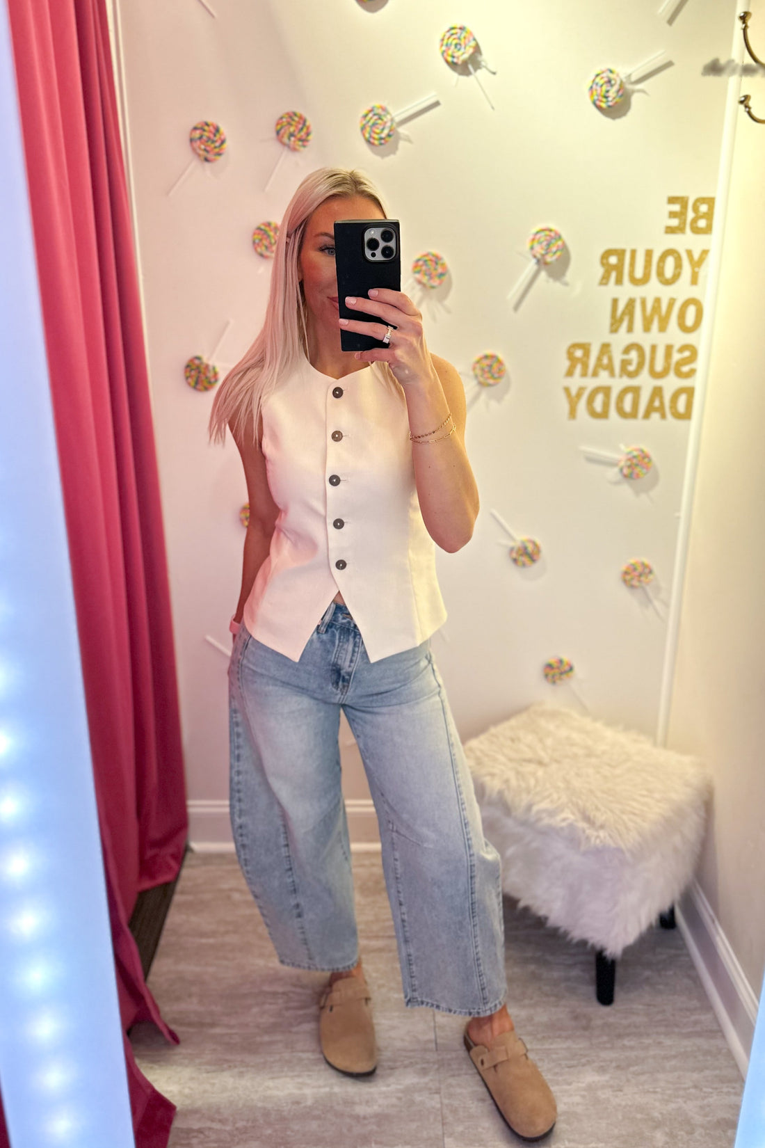 Brylee Warm Taupe Wide Leg Denim Jeans
