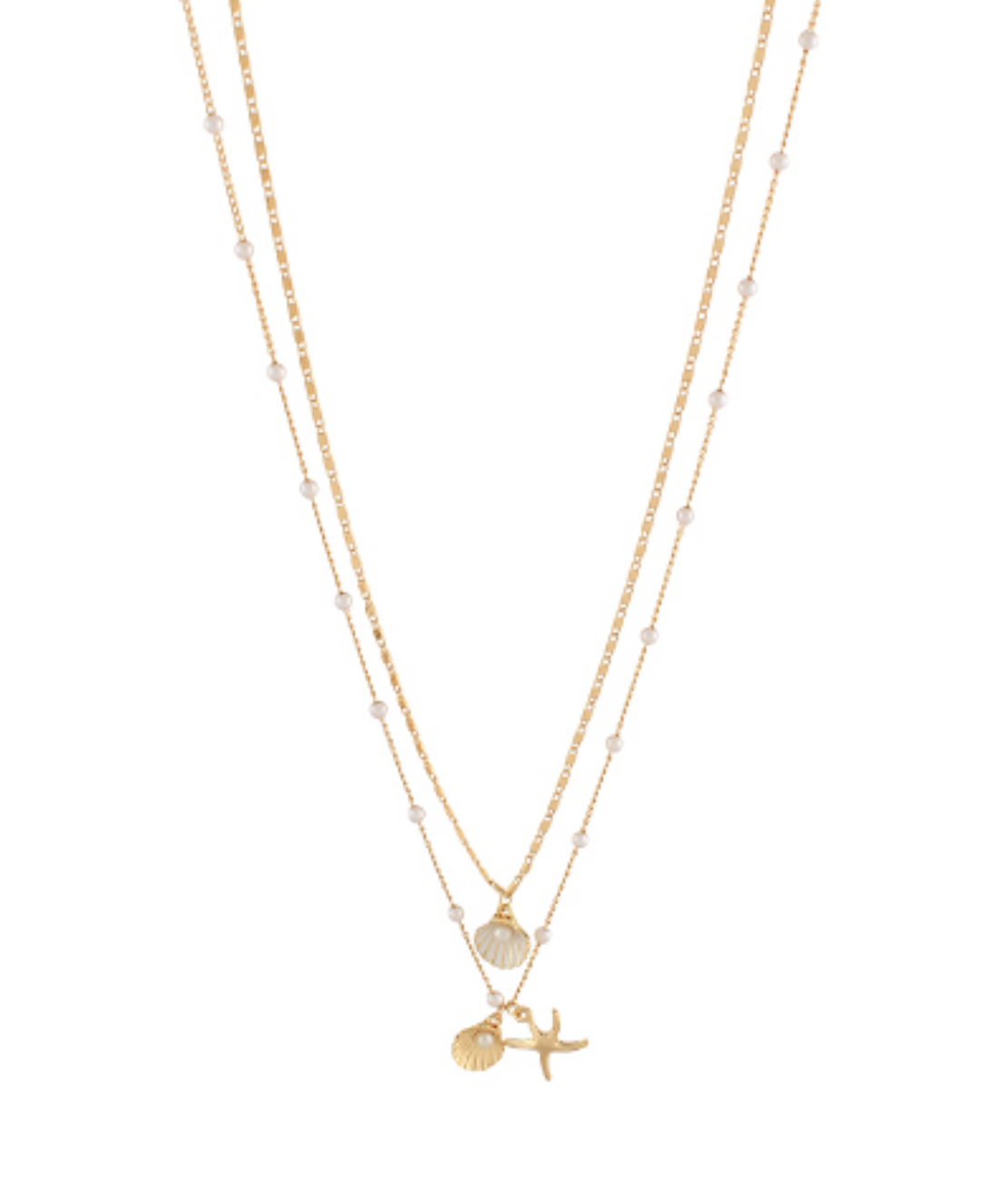 Double Chain Pearl Shell and Starfish Charm Necklace