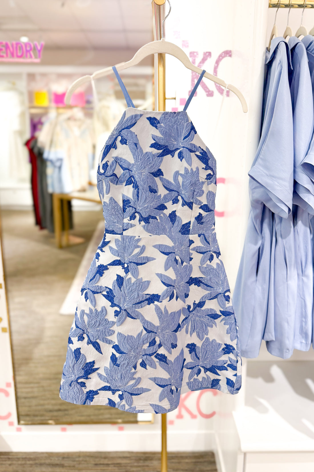 Paradise Pattern Ruched Halter Neck Mini Dress
