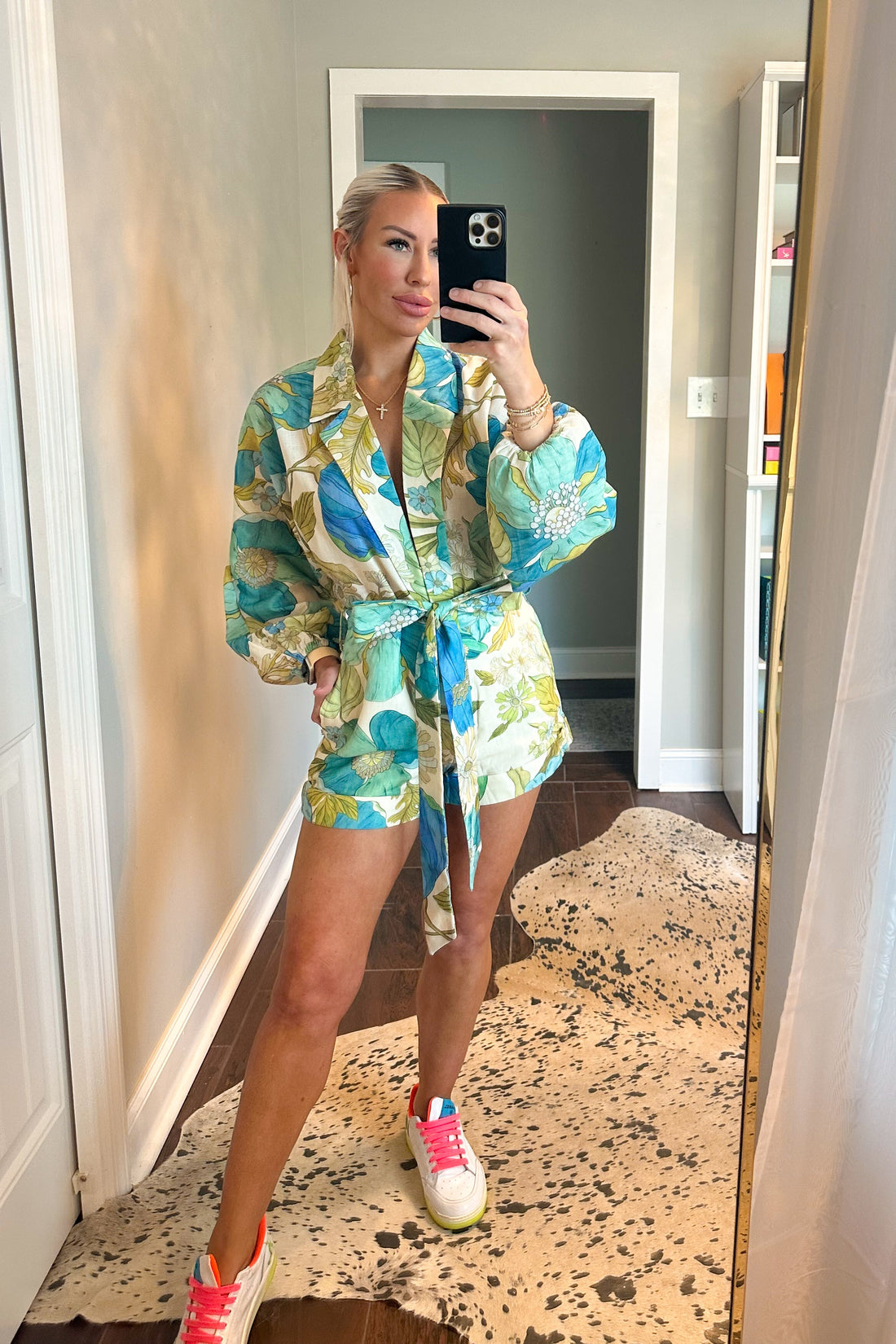 Blue and Green Floral V Romper