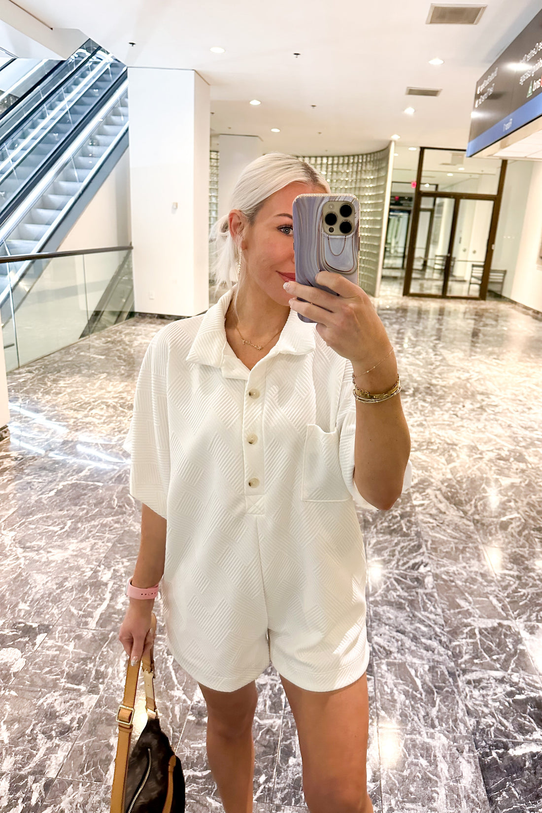 White Textured Button Up Romper