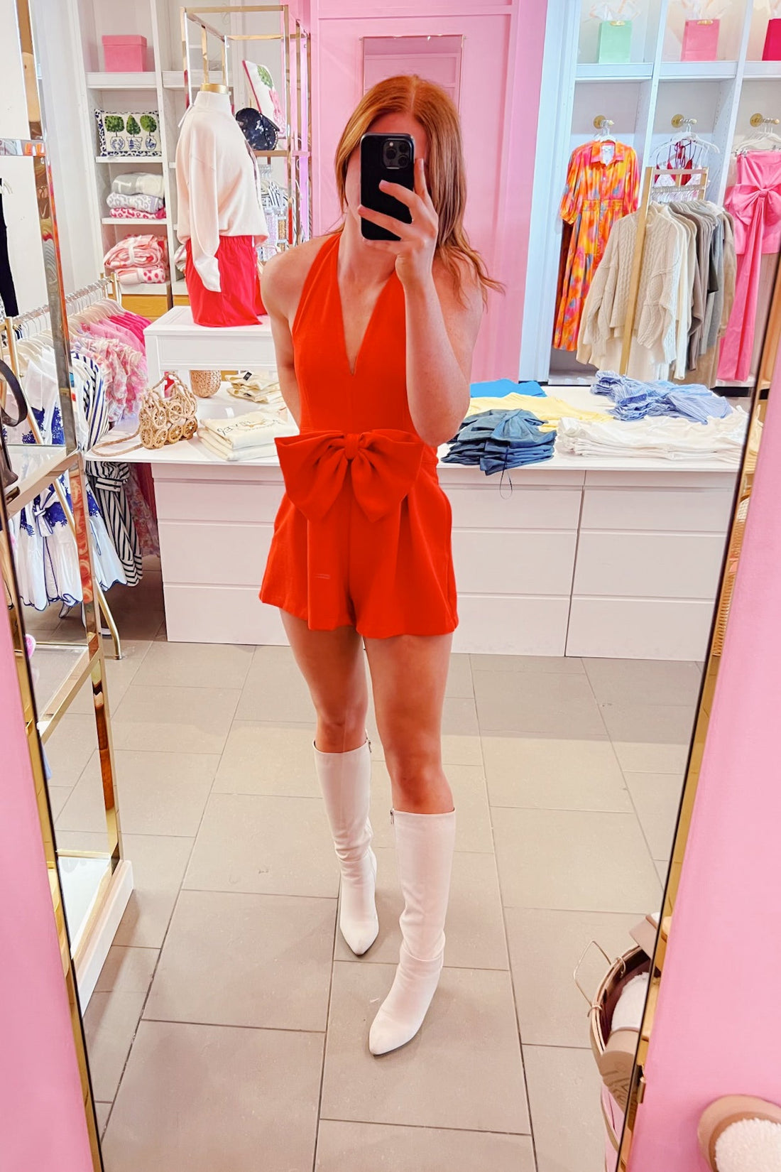 Red Halter Neck Bow Romper
