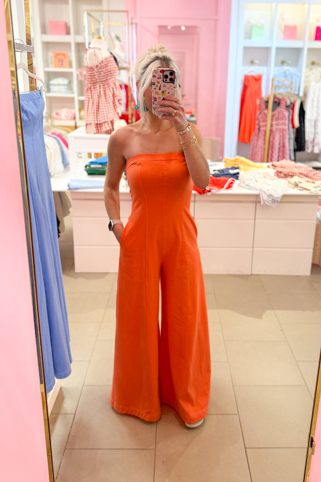 Orange Wide Leg Tube Jumpsuit