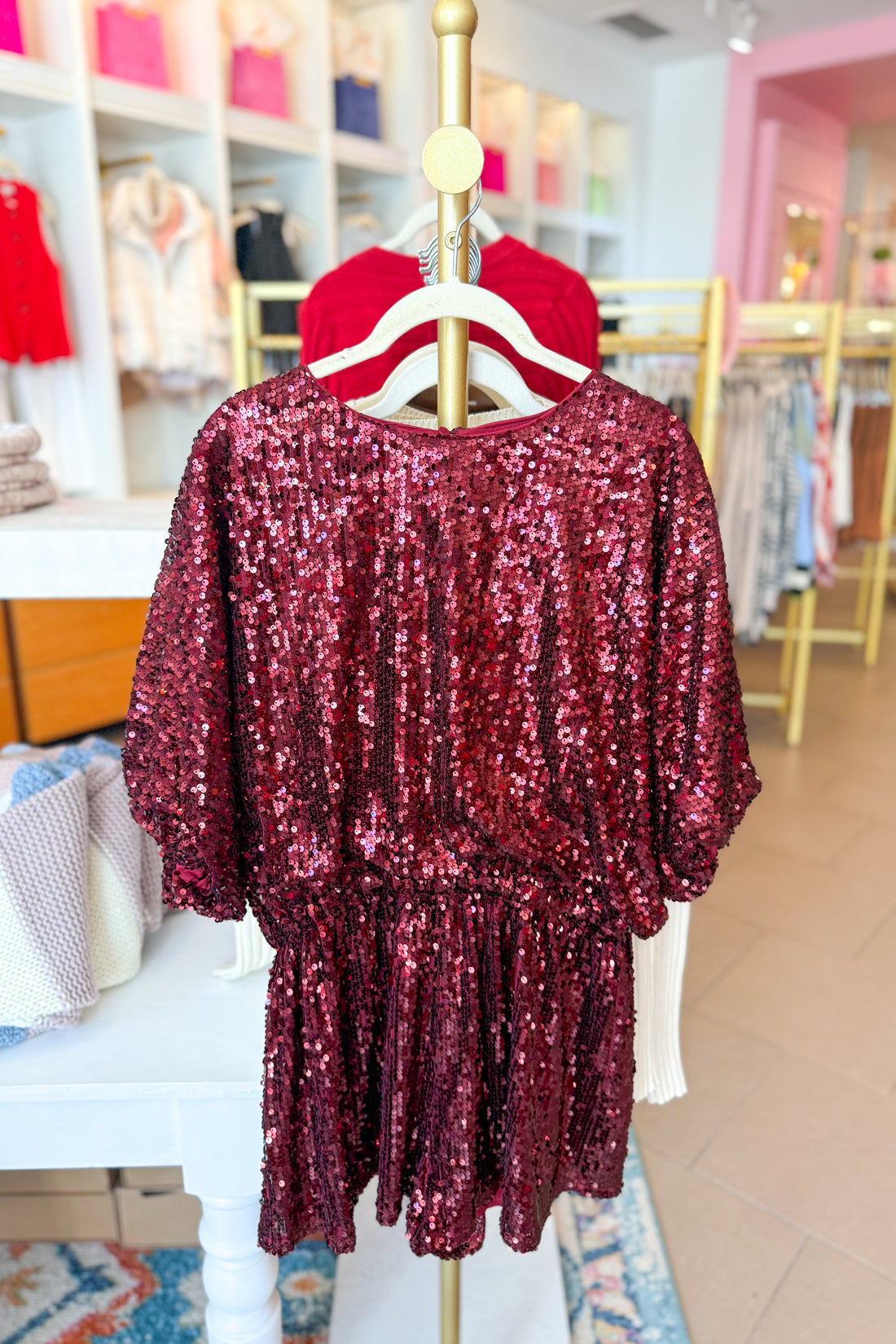 Wine Red Sequin Romper