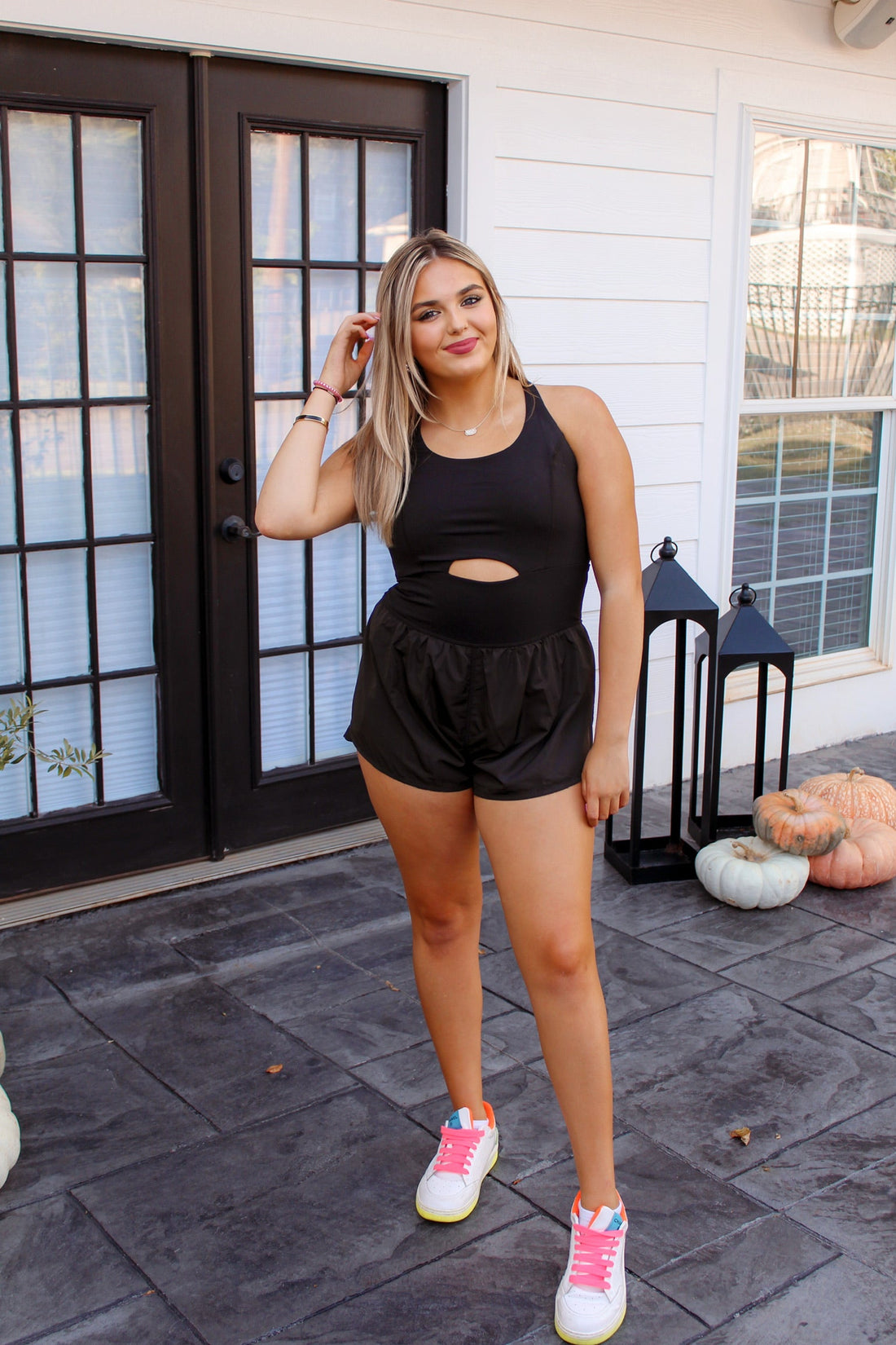 Black Cut Out Detail Athletic Romper Dress