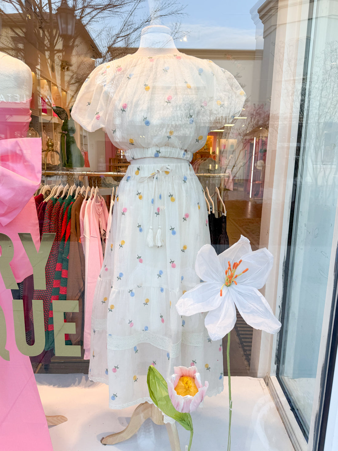 Cream Embroidered Floral Crop Top & Maxi Skirt Set