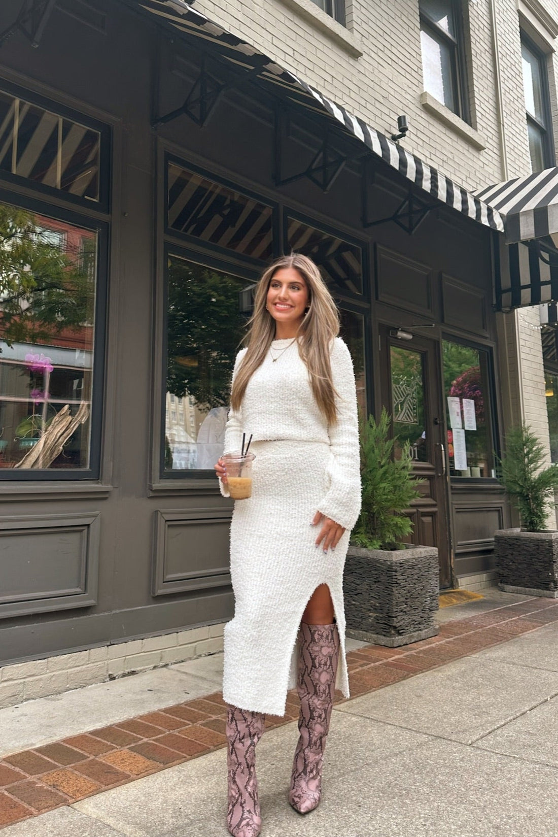 Cream Soft Knit Crop Top and Midi Skirt Set