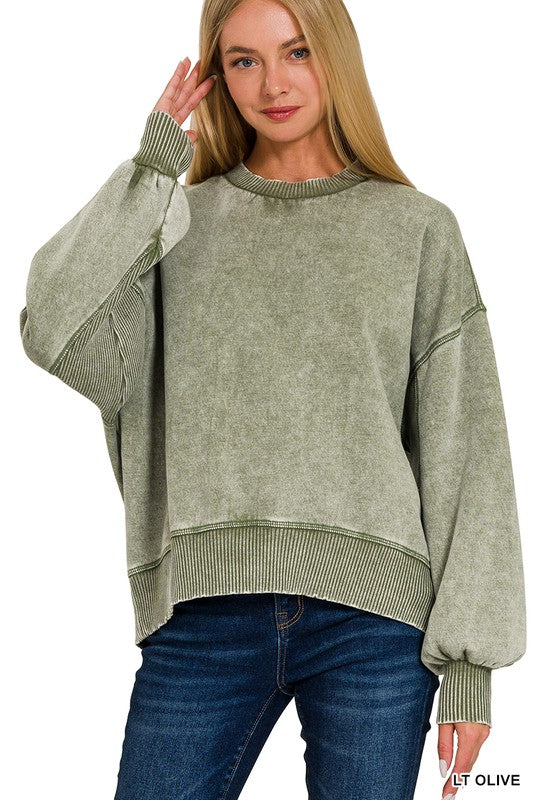 Charcoal High Low Acid Wash Fleece Sweatshirt