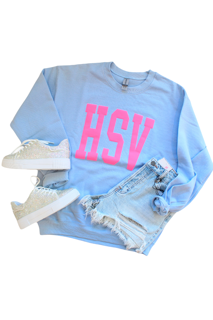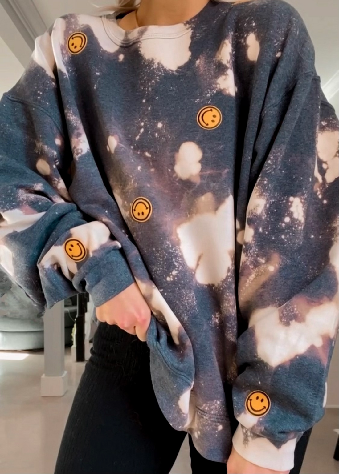 Blue Bleached Smiley Face Crewneck Sweatshirt