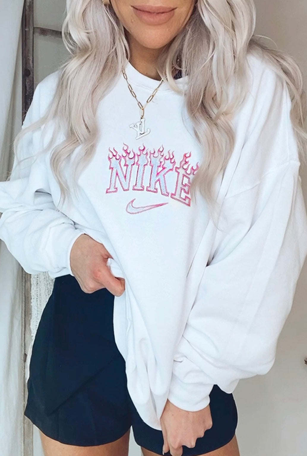 Pink and Tan Flame Burns Crewneck Sweatshirt
