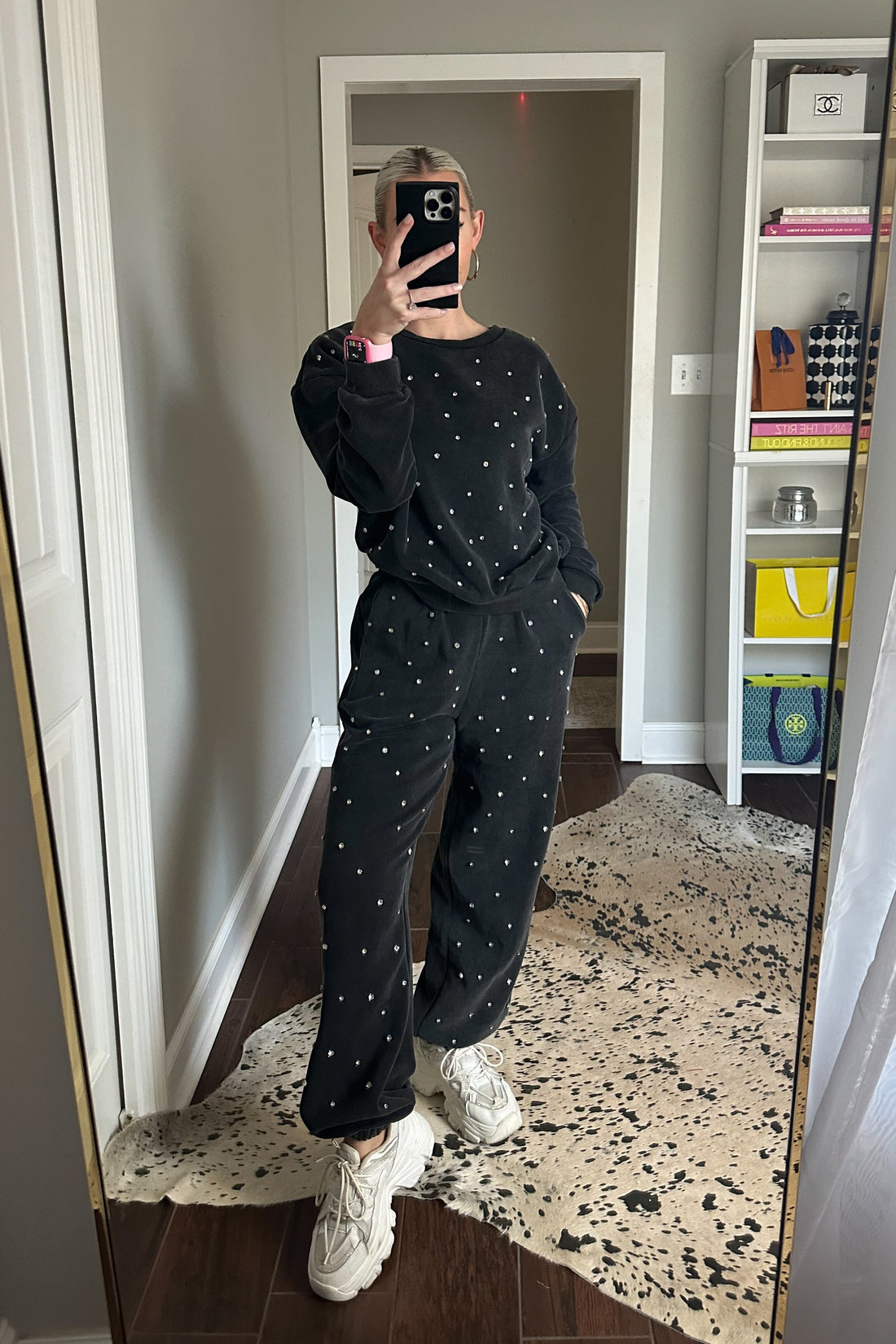 Charcoal Rhinestone Studded Crewneck