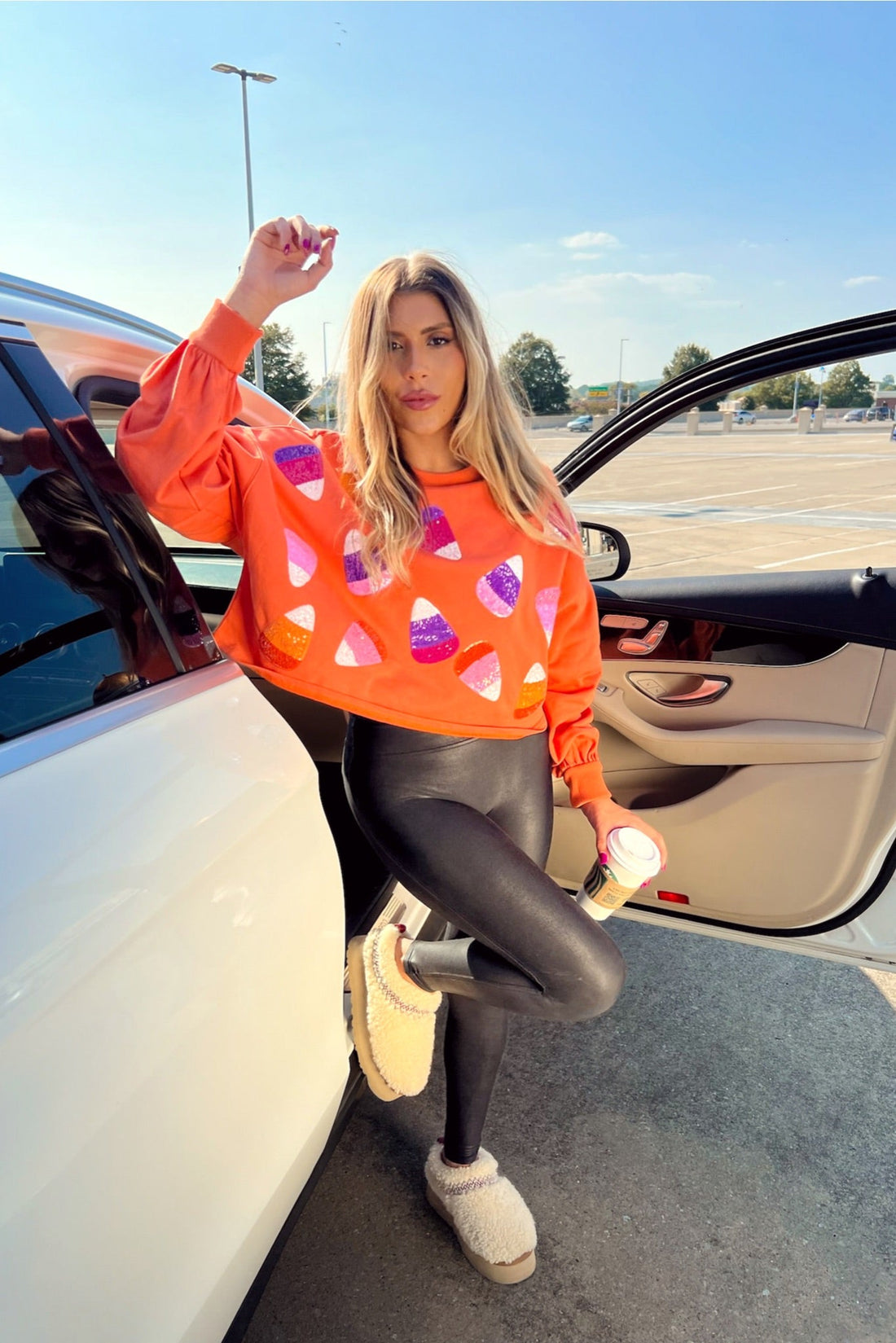 Orange Candy Corn Sequin Patch Cropped T-Shirt