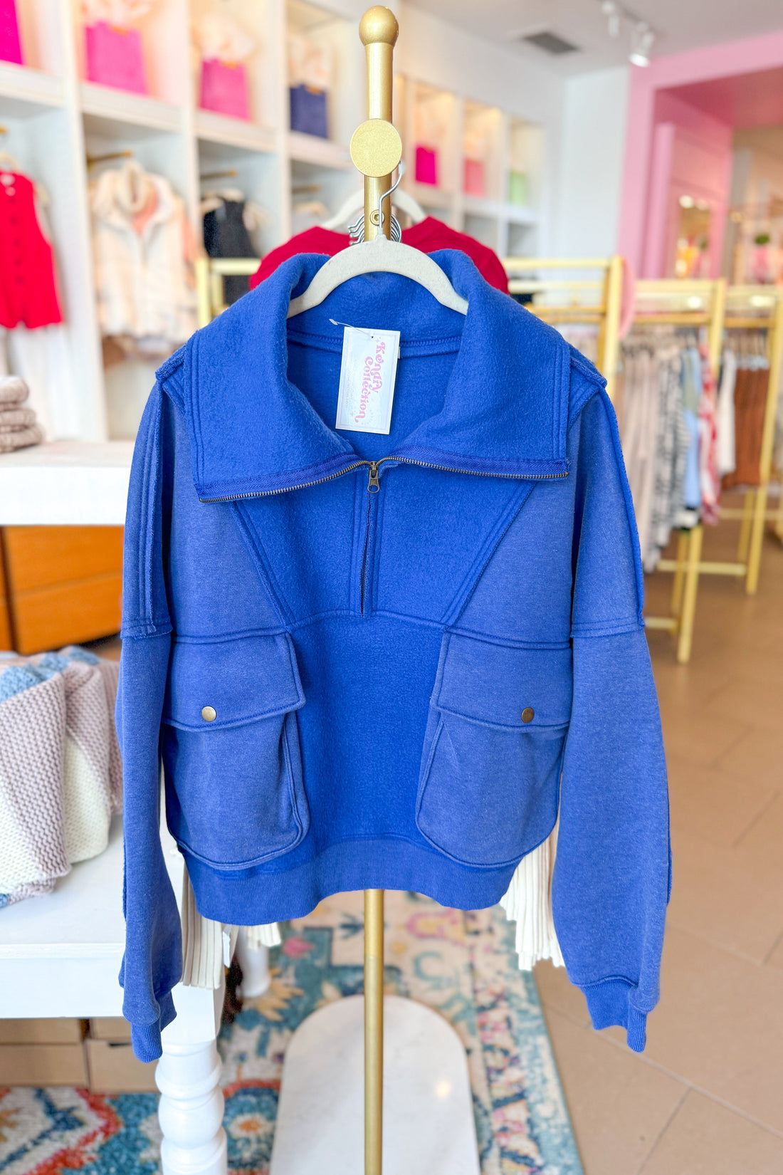 Blue Fleece Oversized Pullover