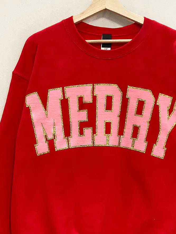 Red and Pink Glitter Merry Crewneck