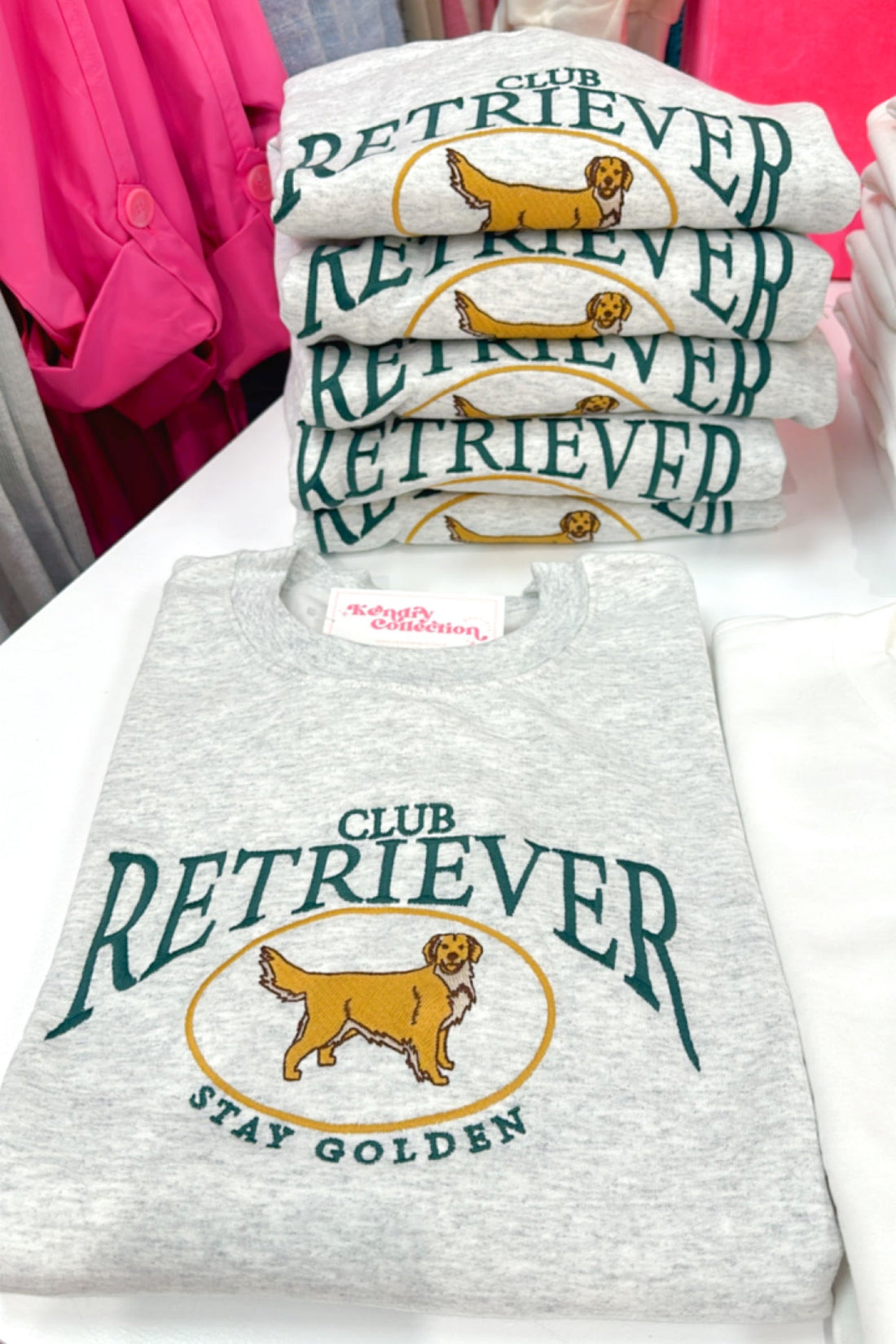Gray Embroidered Golden Retriever Crewneck