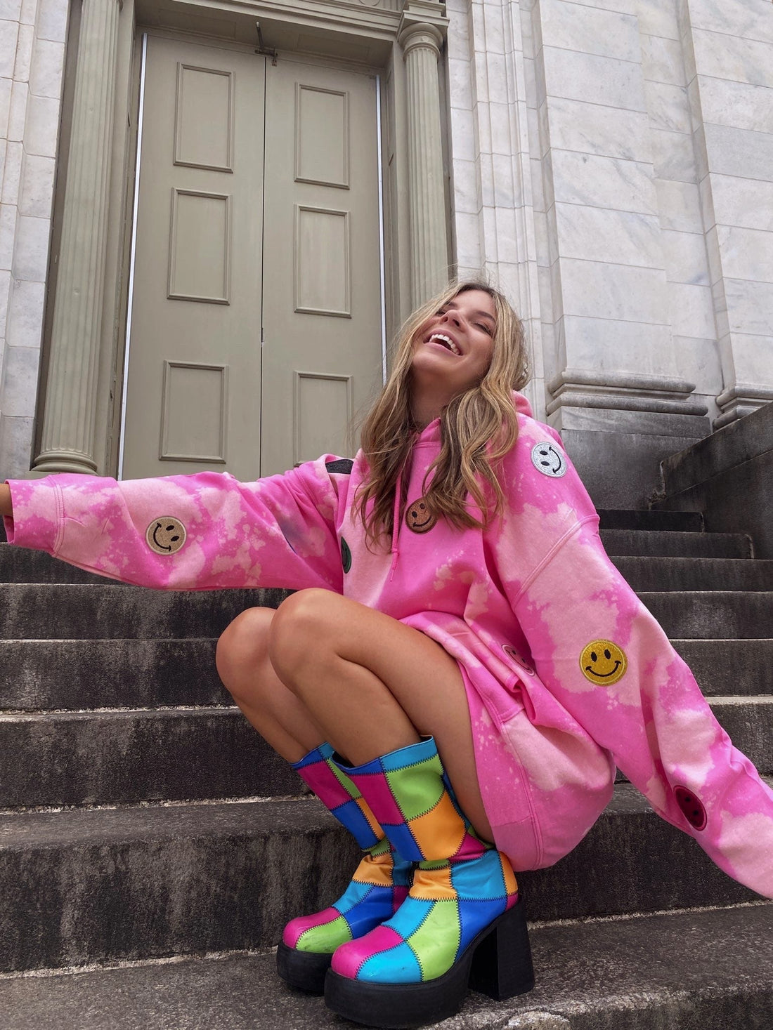 Pink Tie Dye :) Patch Hoodie