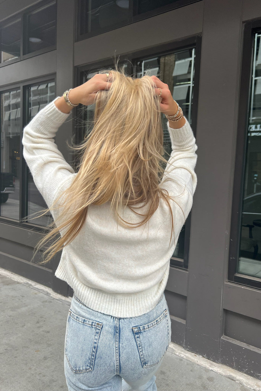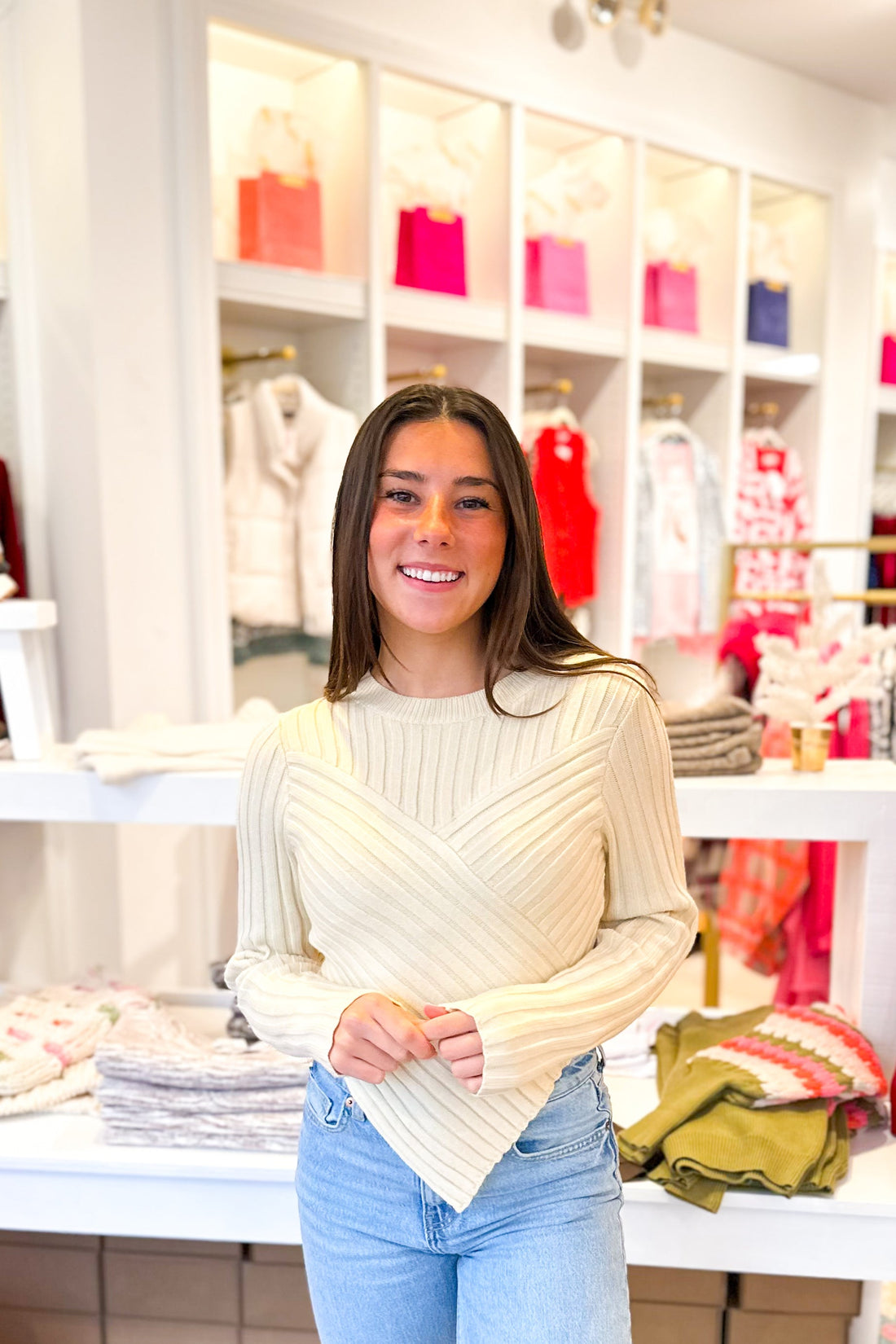 Cream Ribbed Asymmetrical Knit Sweater Top