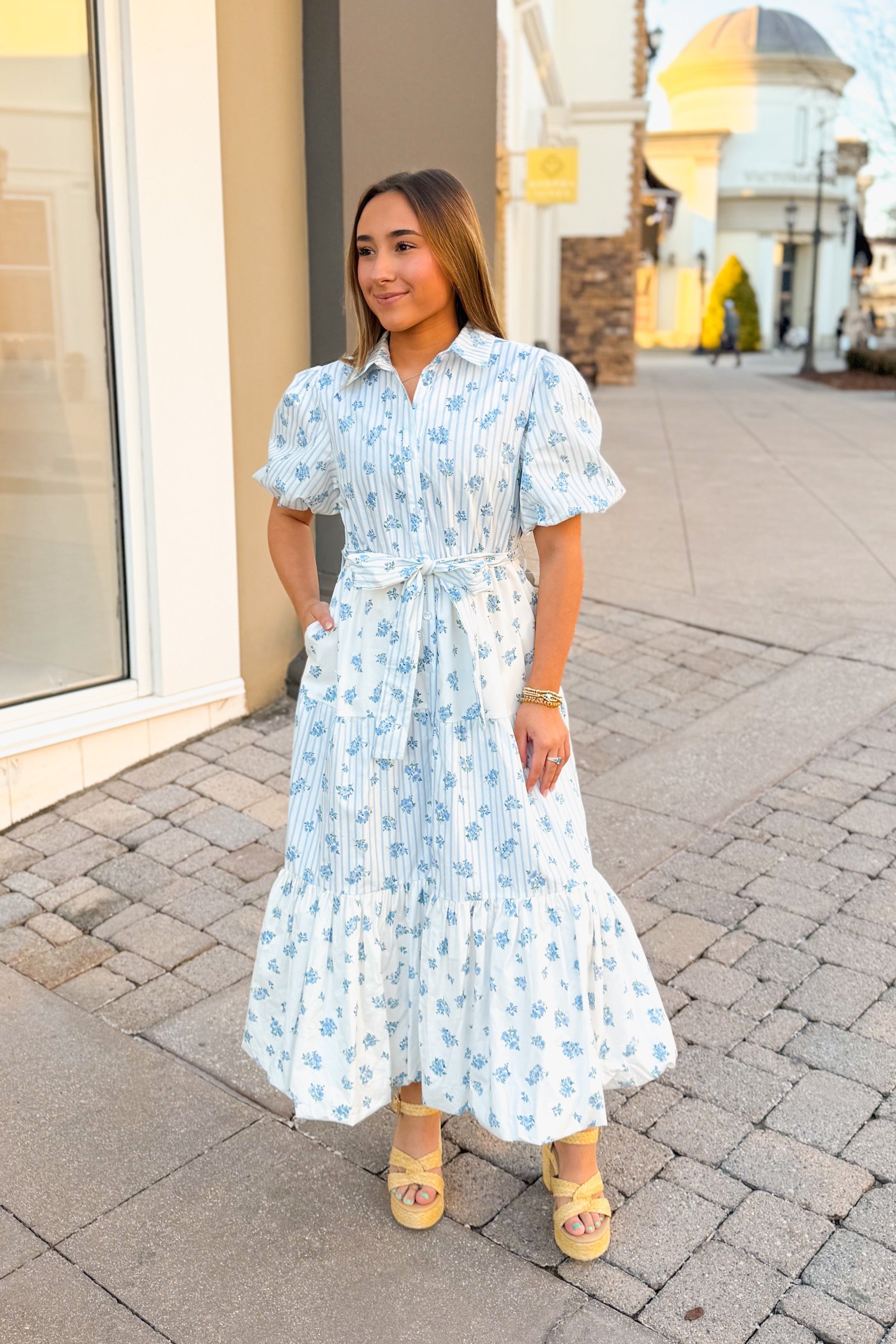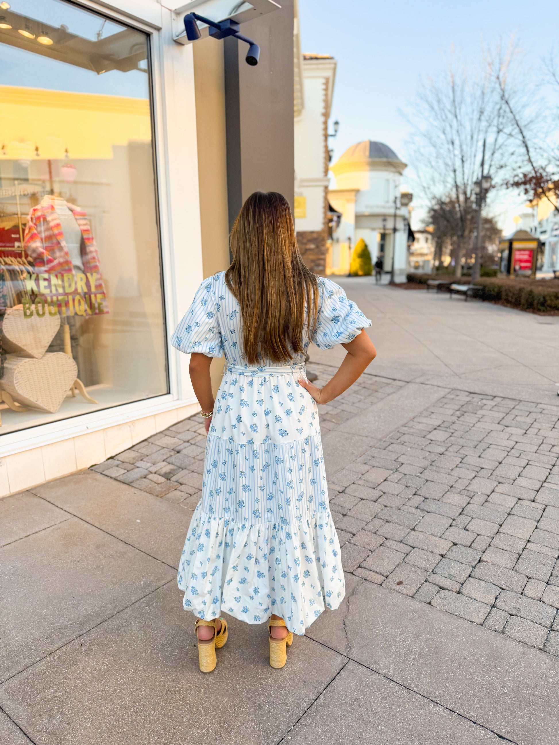 Make a statement at any garden party or wedding as a stylish guest in our Blue and White Floral Maxi Dress. With its flowy design and beautiful mixed floral print, you'll feel elegant and confident all day (and night) long!
