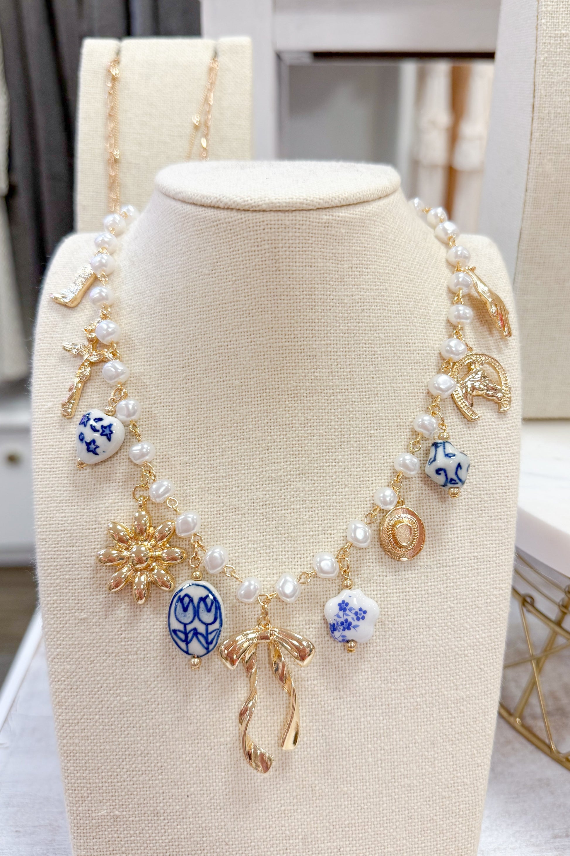 Bow Pearl Chain Charm Necklace