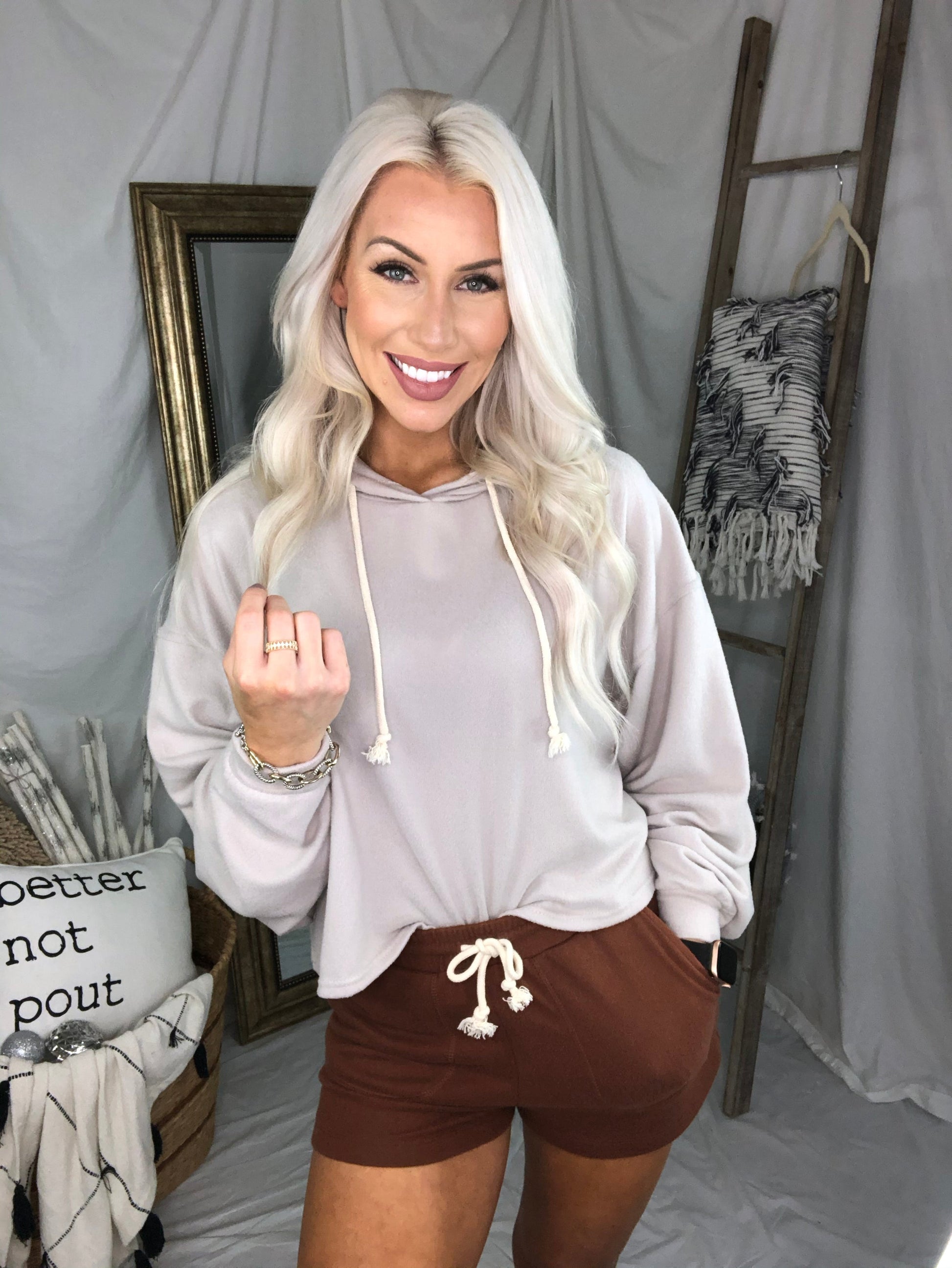 Brushed Balloon Sleeve Cropped Hoodie - Alpaca