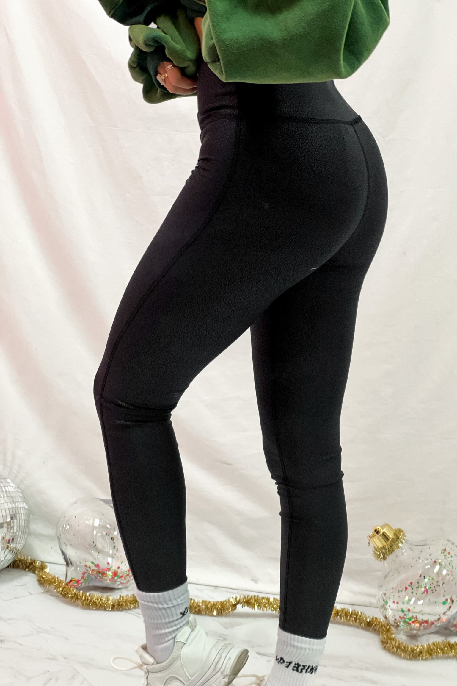 Every girl needs this pair of leggings for the winter months! These stylish?black leggings?are crafted?from a?stretchy polyester-spandex fabric and decorated with a semi shiny black pattern made of foil. Featuring a high waisted, tummy control top, moisture wicking fabric and a discreet front pocket perfect for your phone, keys and other items.?