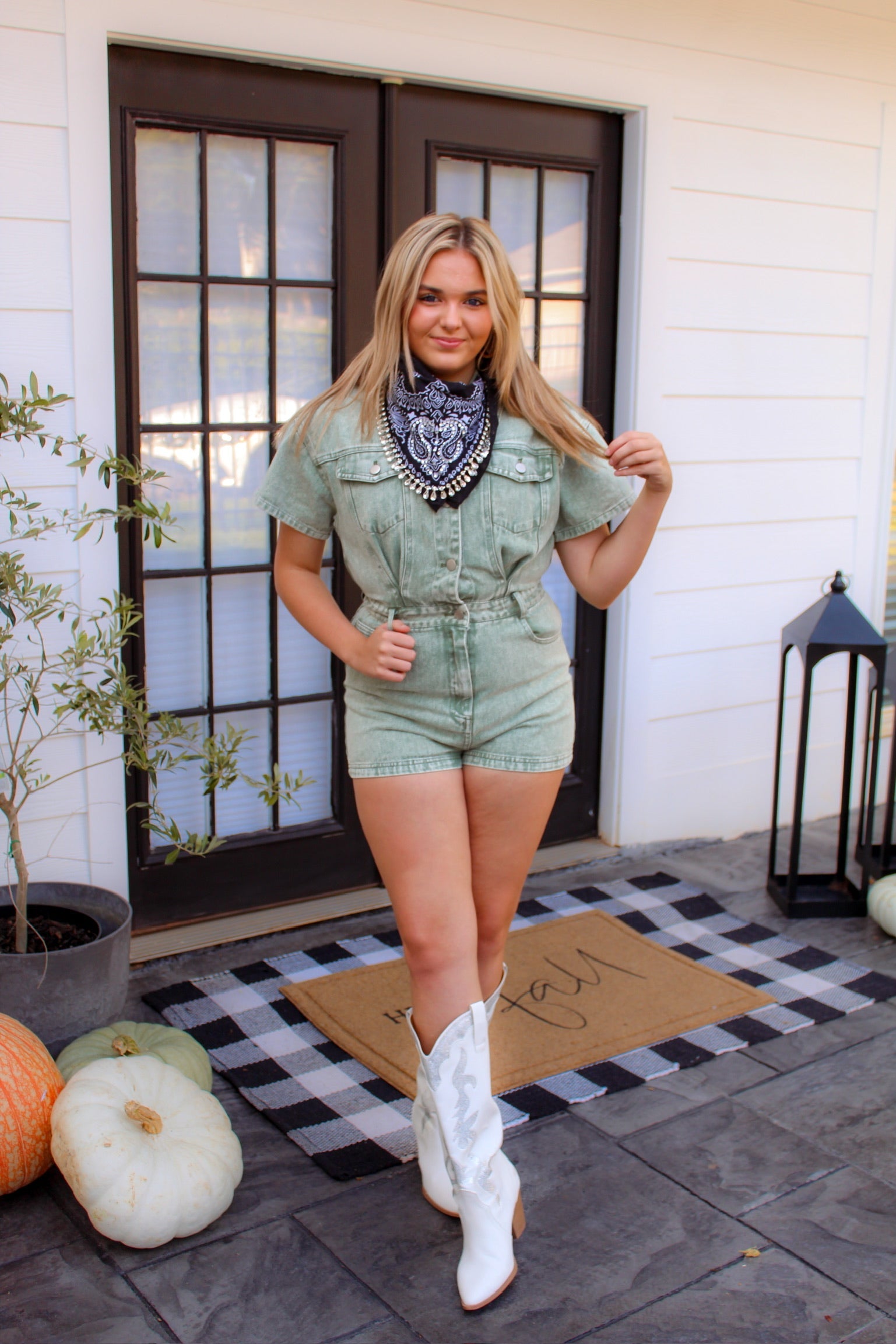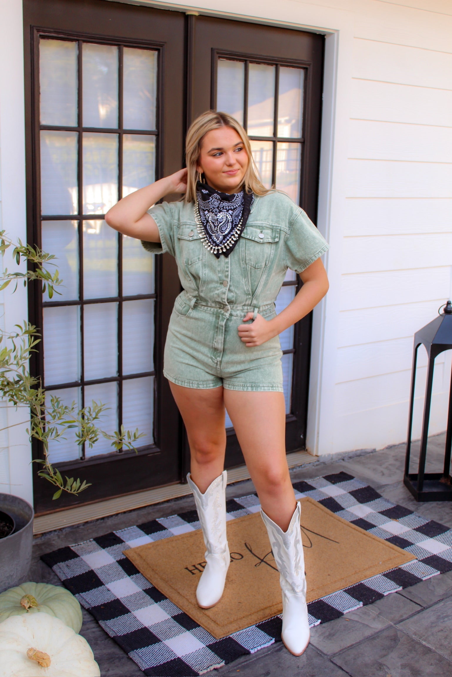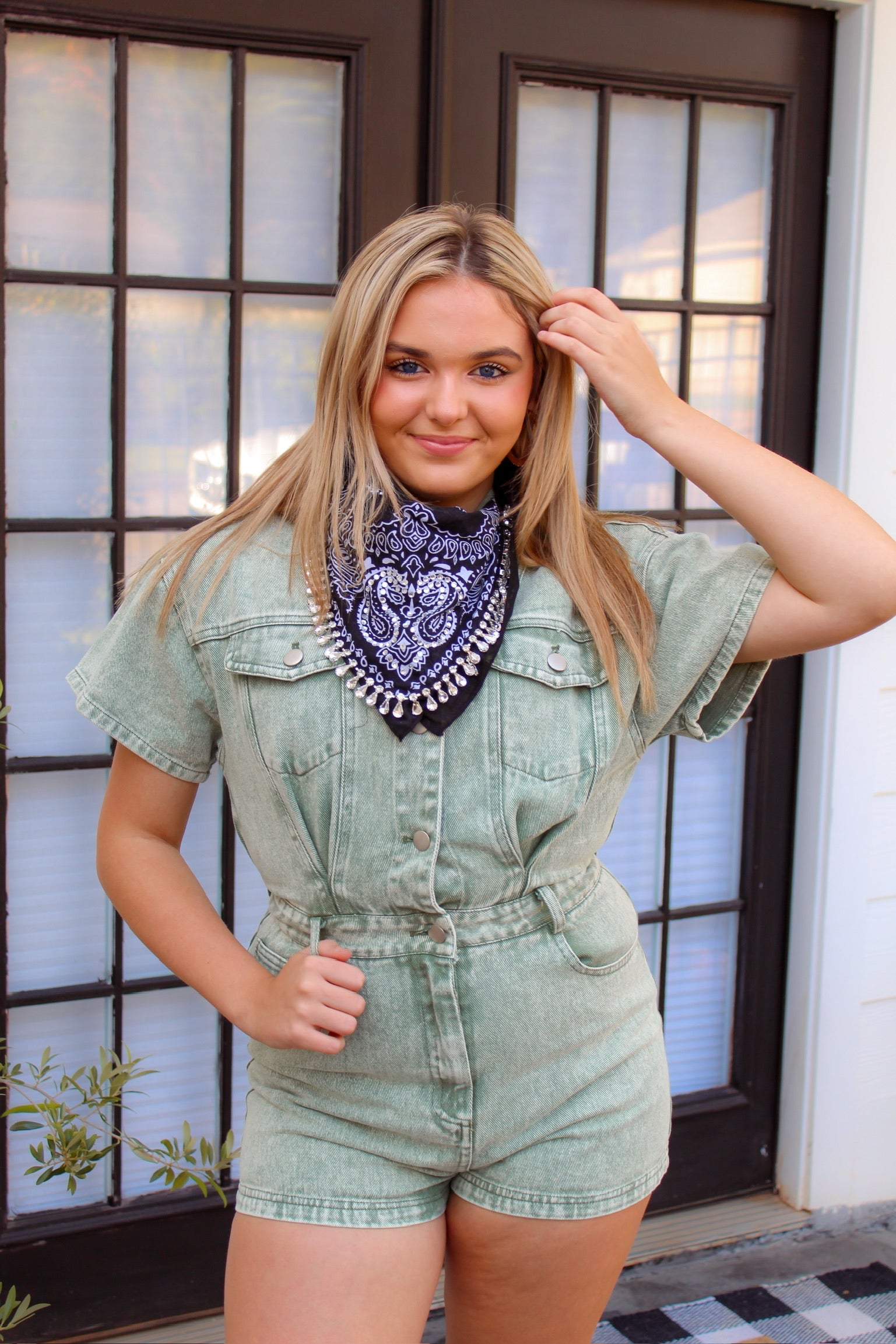 Green Acid Wash Short Sleeve Denim Romper