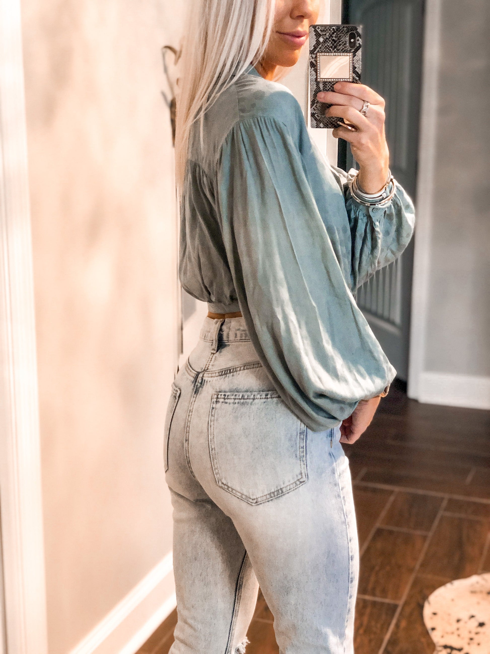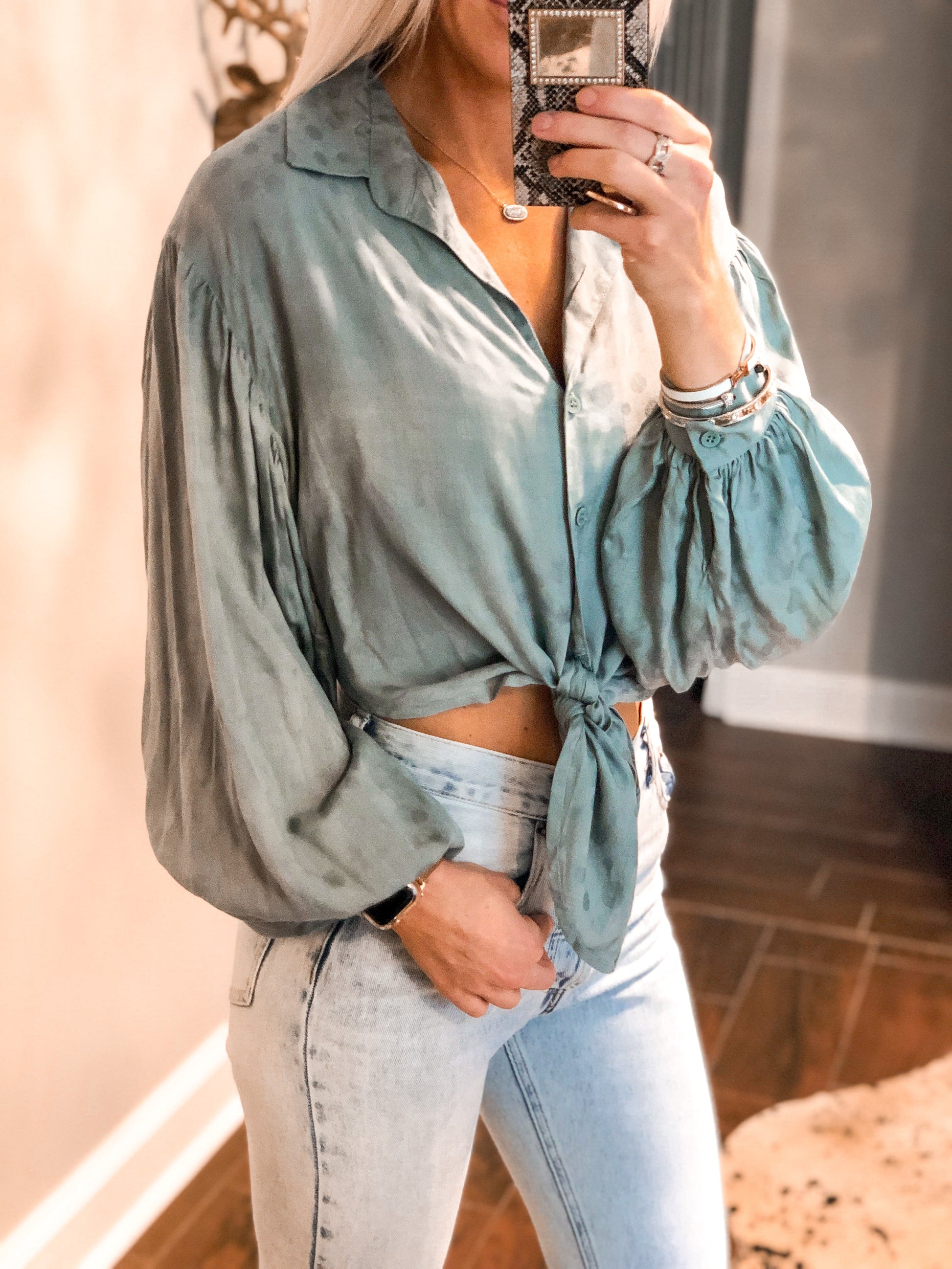Green Polka Dot Puff Sleeve Blouse
