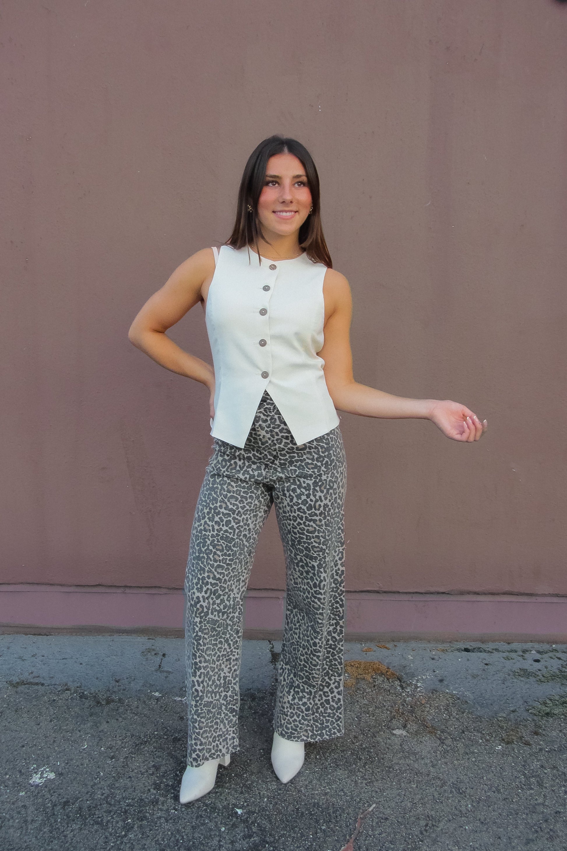 Introducing our Ivory Button Down Sleeveless Vest! The perfect lightweight addition to your fall transition wardrobe, this vest is versatile enough for transitional weather or game day. Button it up or layer it over a shirt for a chic look. Get yours today!