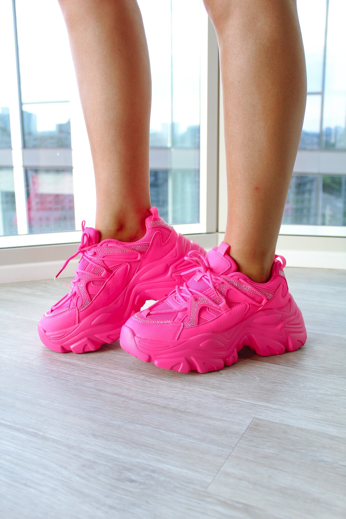 Laura Rhinestone Chunky Hot Pink Sneaker