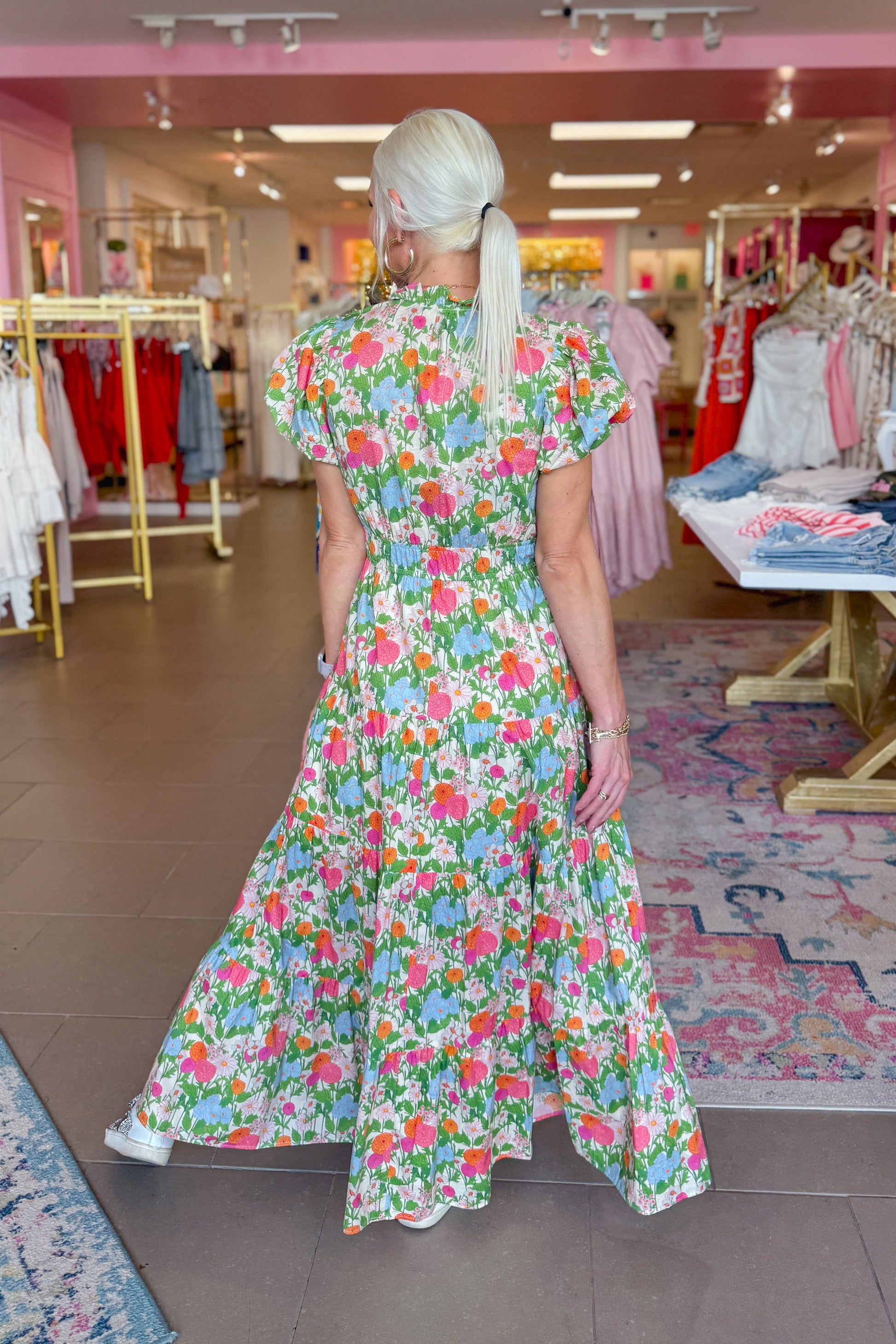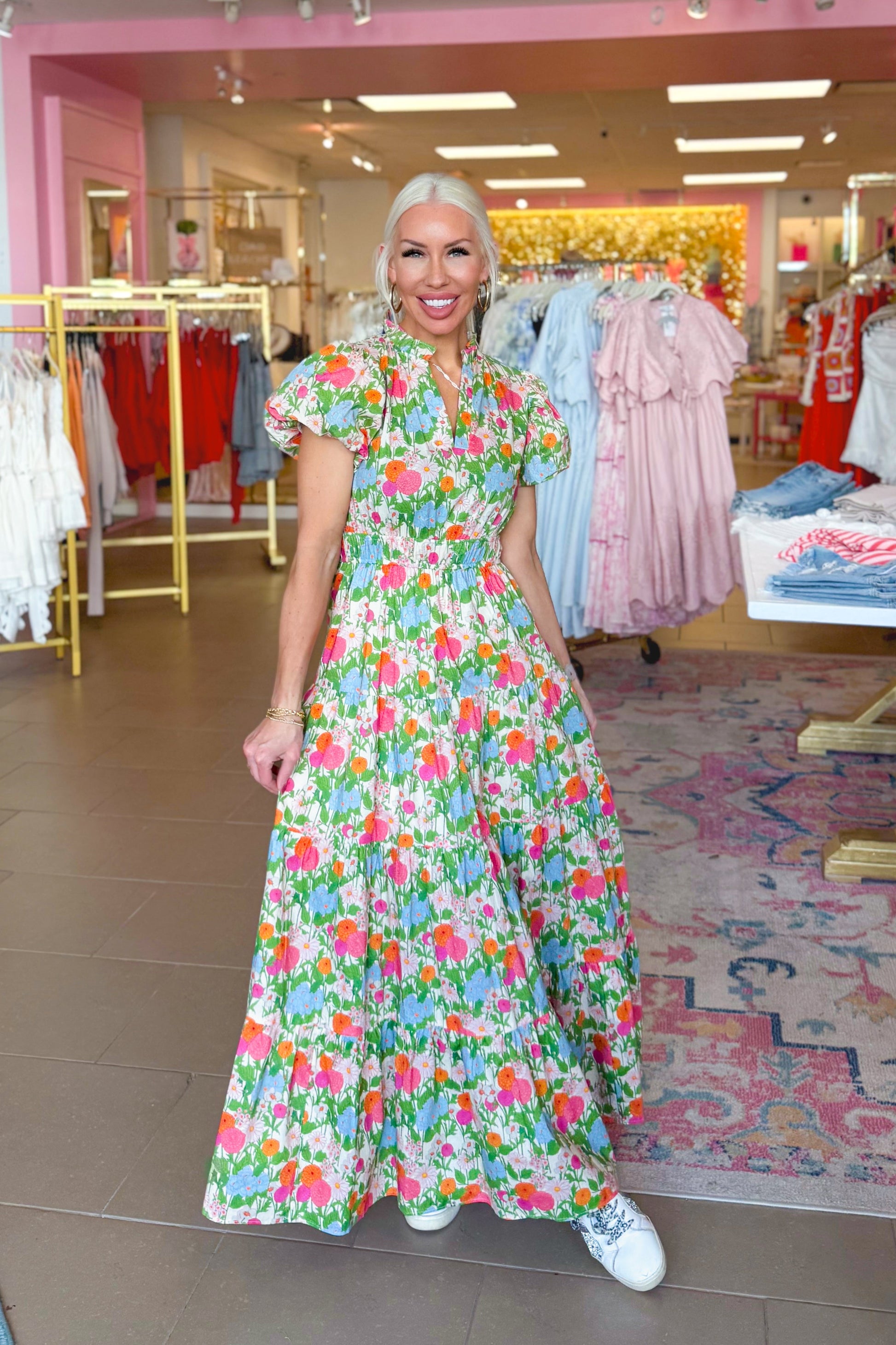 Multi Color Floral Puff Sleeve Maxi Dress