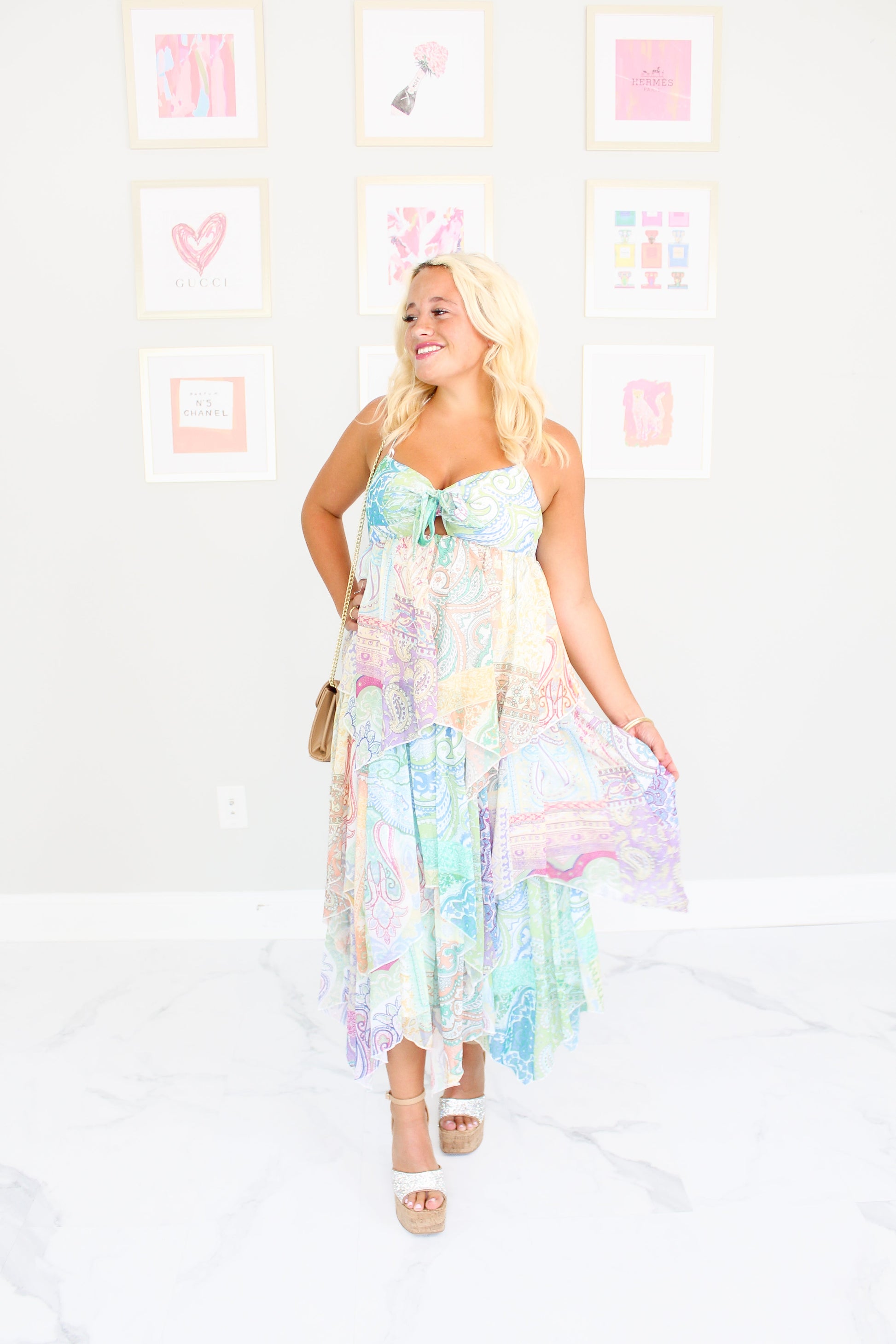 Paisley Print Ruffle Tiered Halter Neck Dress
