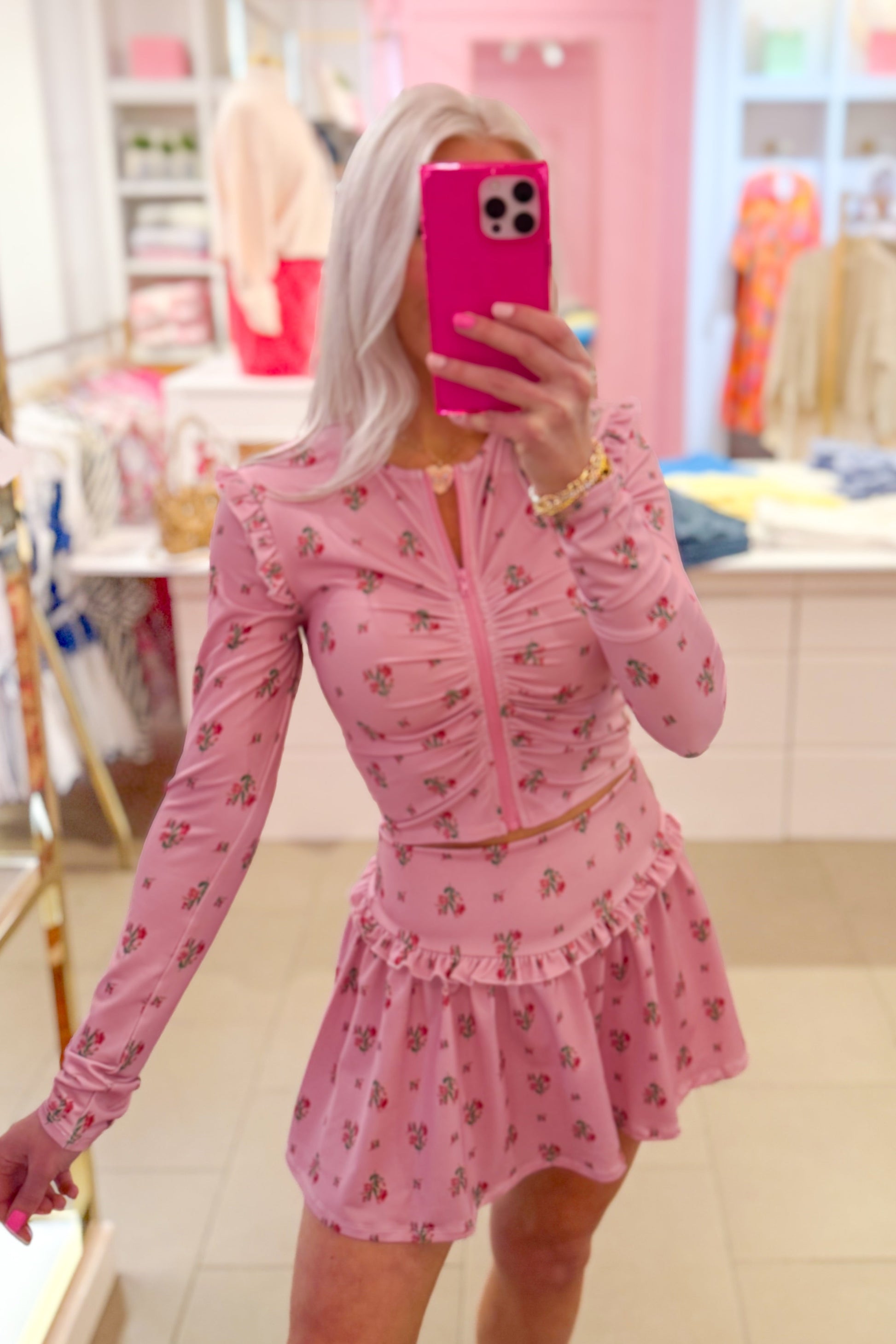 Pink Ditsy Floral Athletic Mini Skort