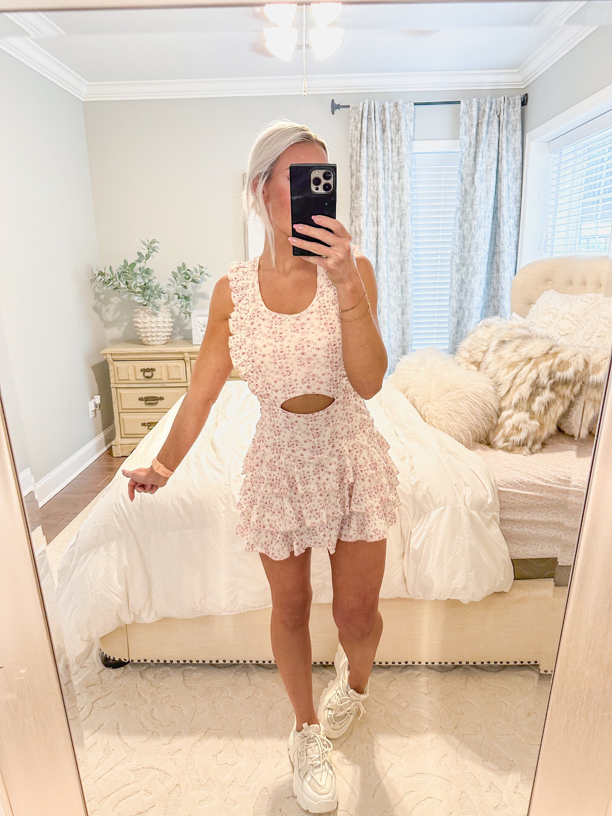 Pink Floral Ruffle Cut Out Athletic Mini Dress