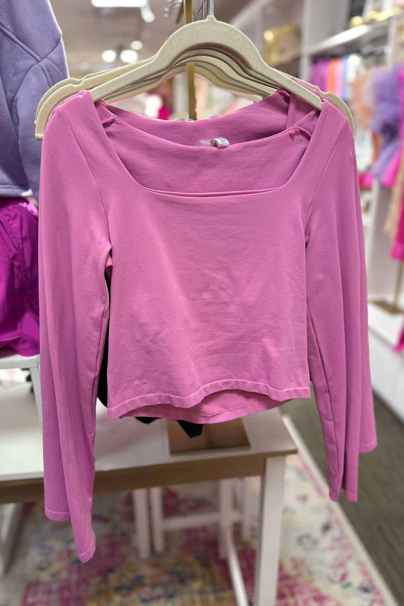 Pink Square Neck Long Sleeve Crop Top