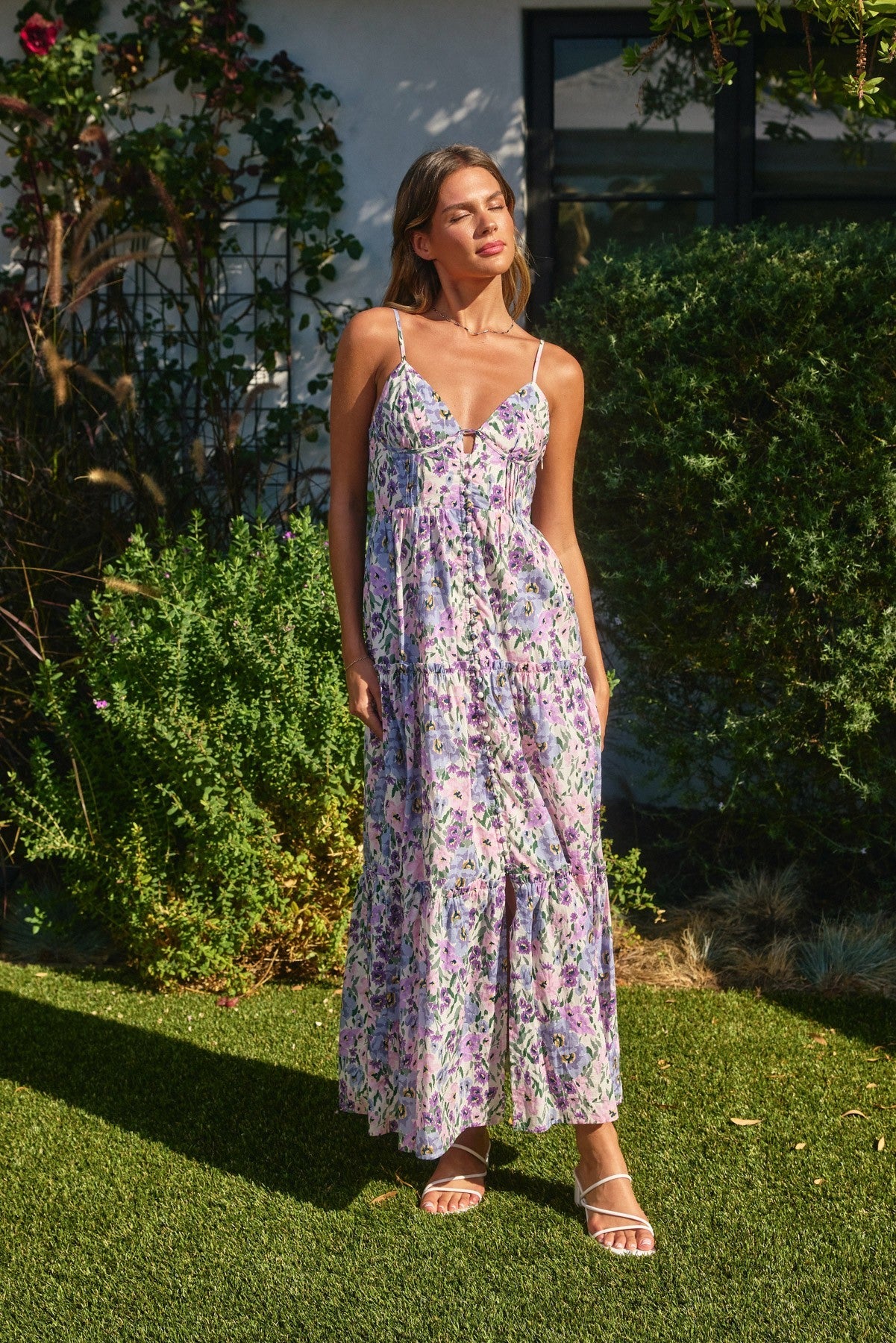Purple Multi Floral Bustier Tiered Maxi Dress