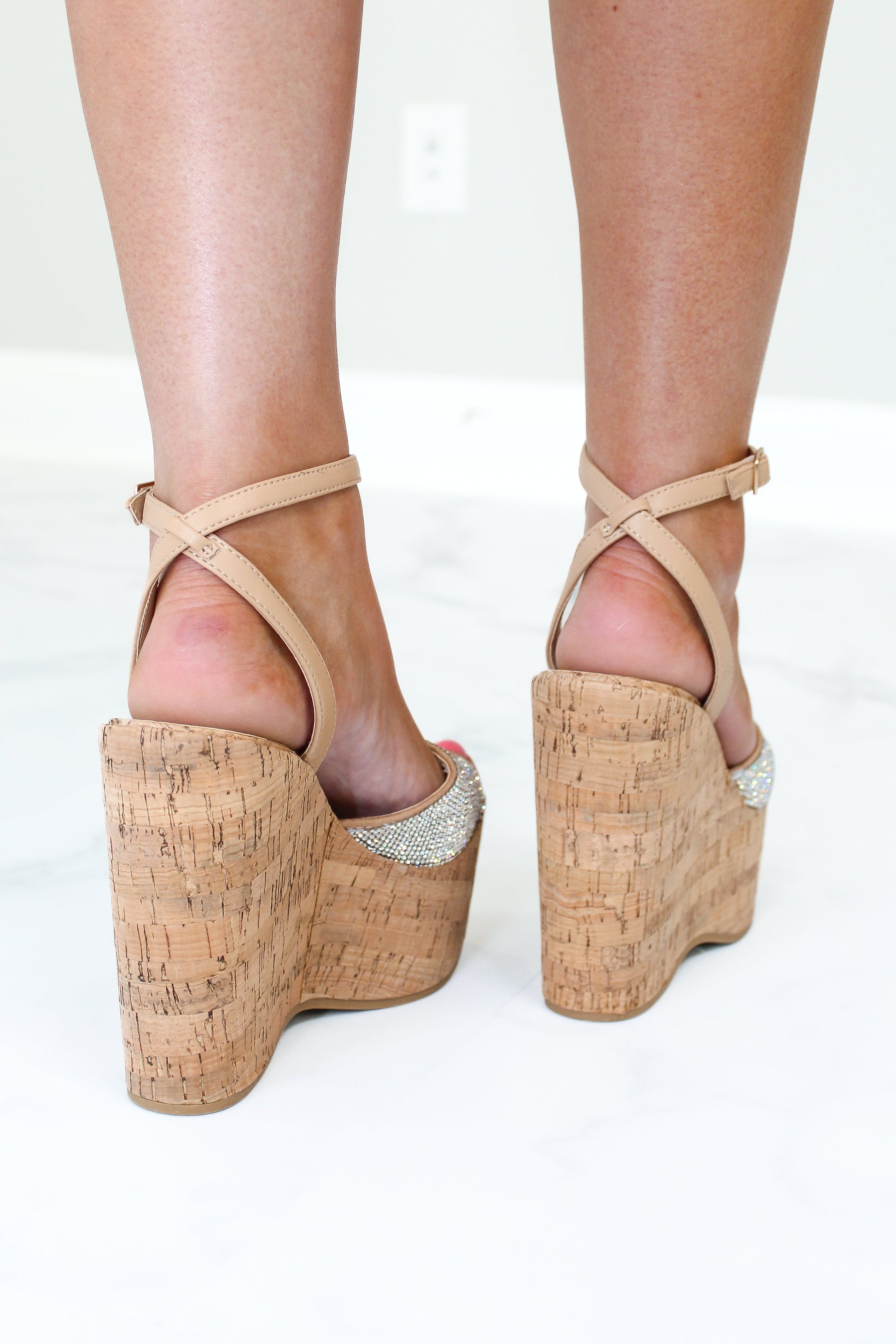 Razzi Rhinestone Cork Wedges