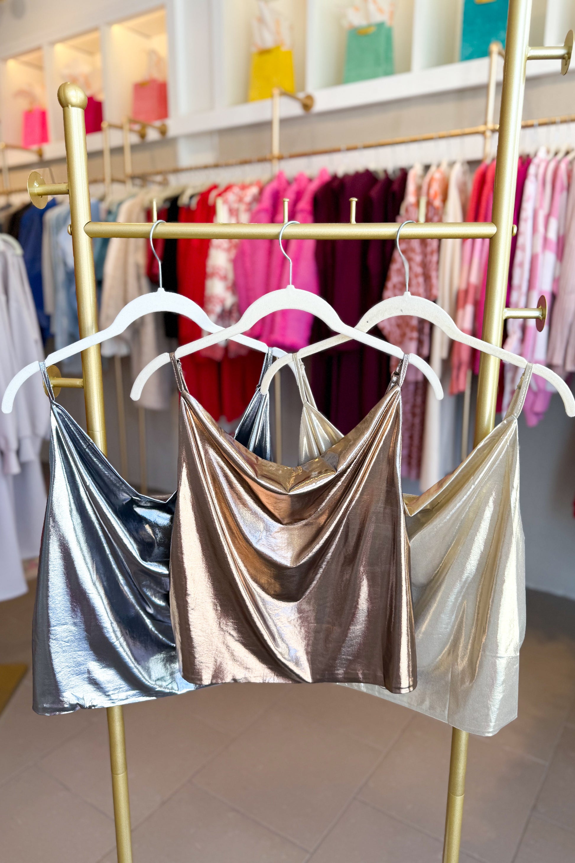 Silver Metallic Cowl Neck Tank Top