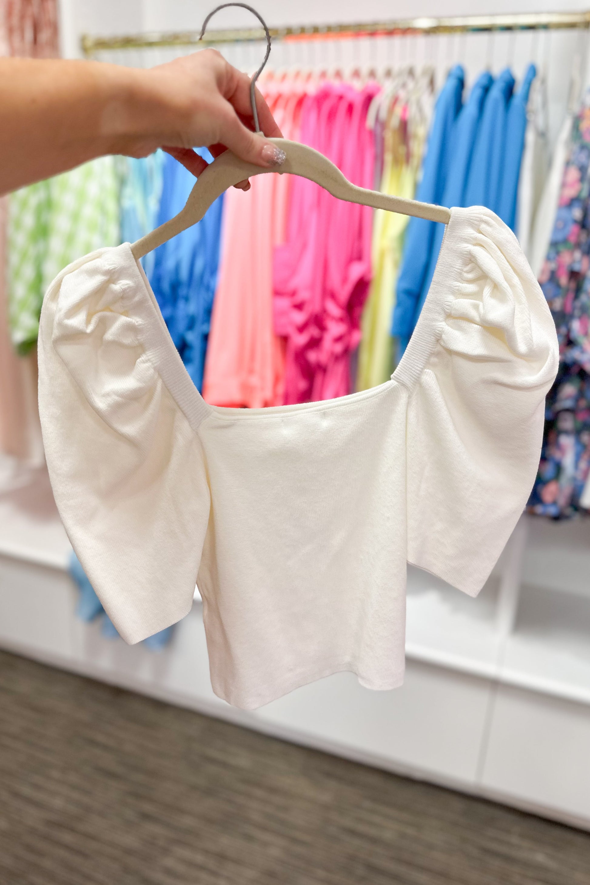 White Puff Sleeve Knit Short Sleeve Top