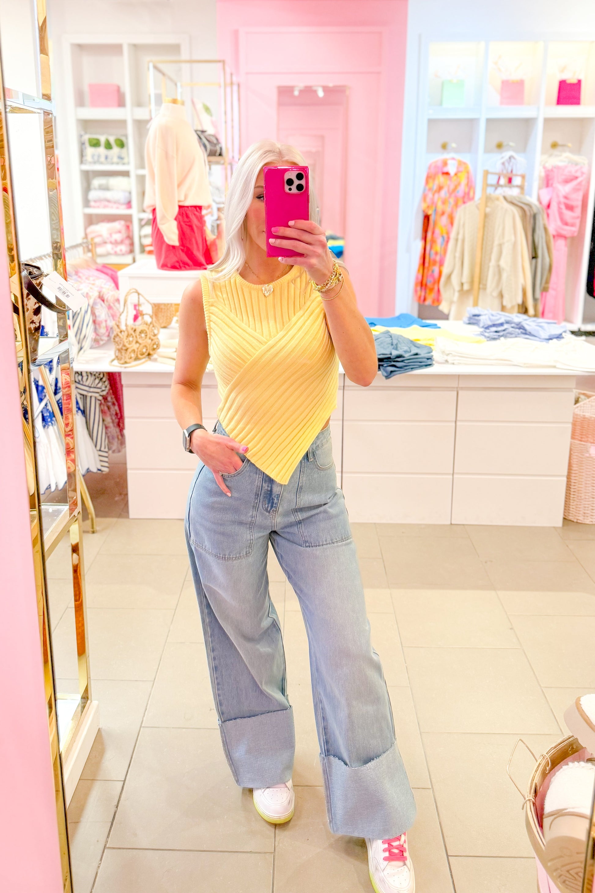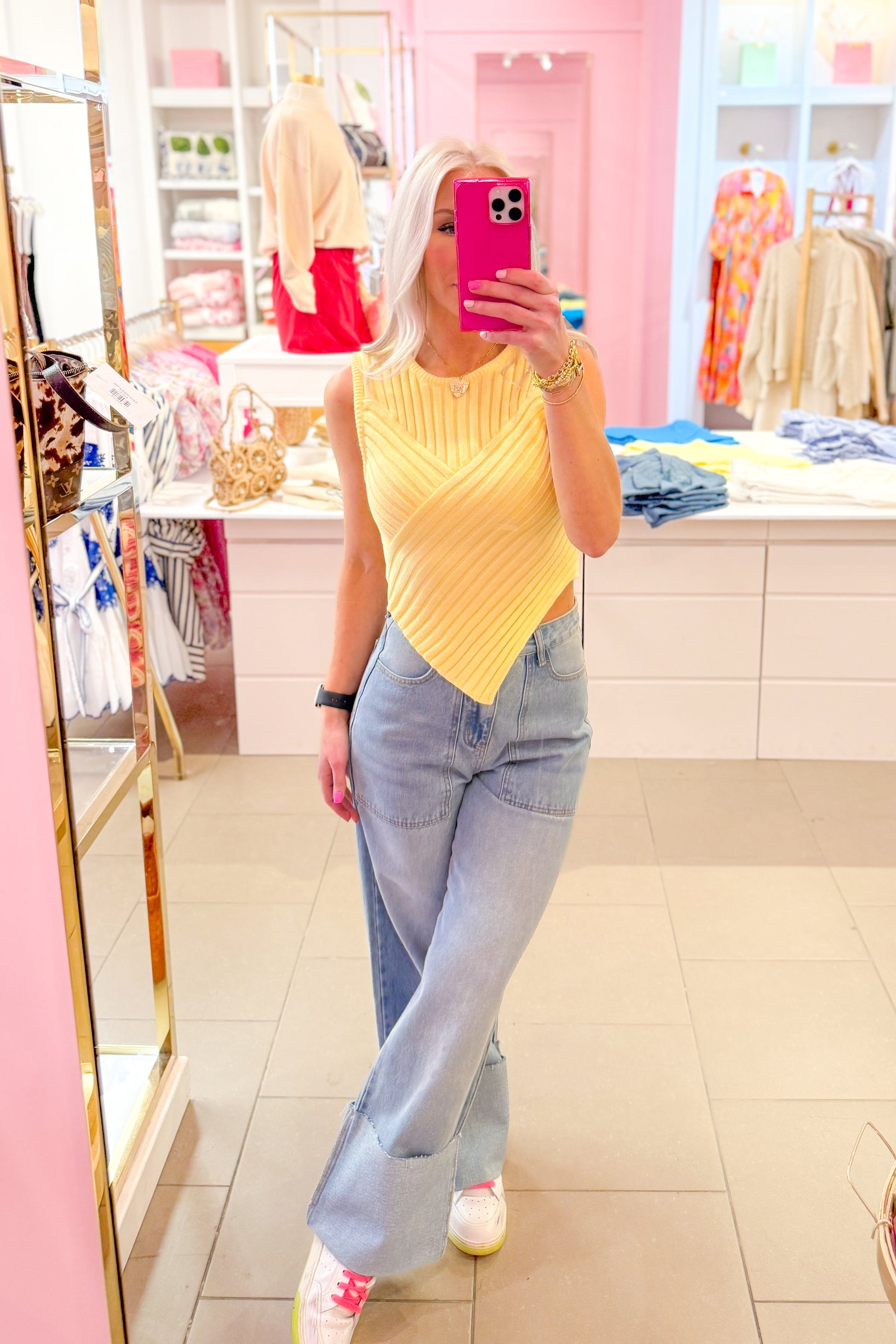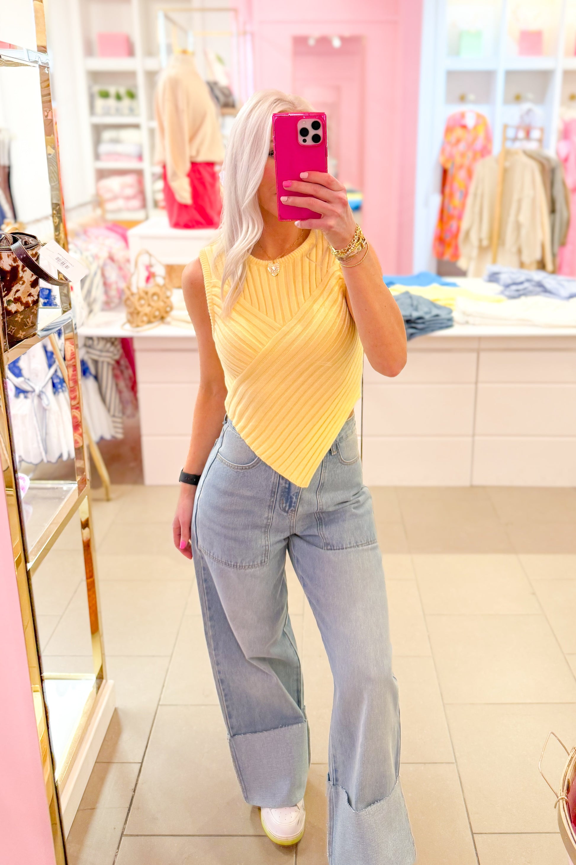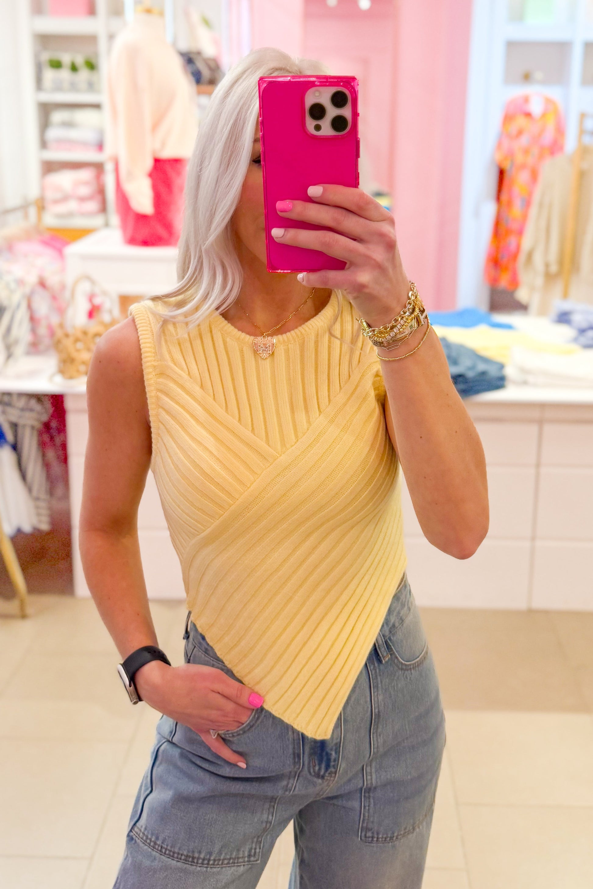Yellow Ribbed Asymmetrical Sleeveless Sweater
